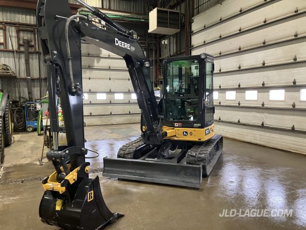 JD 50P CABINE AVEC A/C,TRACK DE RUBBER 90% BON , JOYSTICK, ATTACHE DE GODET MECANIQUE, SORTIE HYDR. AUXILIAIRE, GODET 24 » RIVARD, GARANTIE 2000HRS / 25 OCT. 2026 JD,