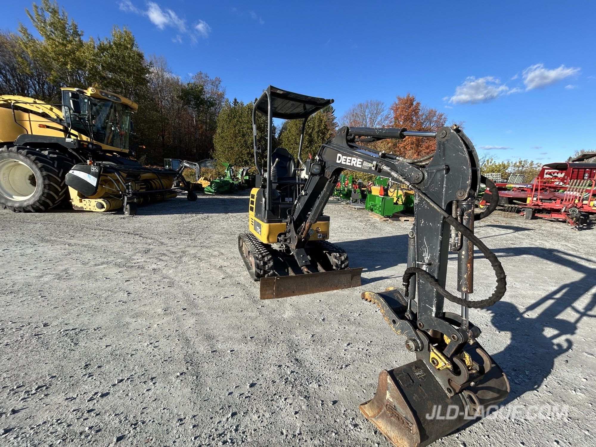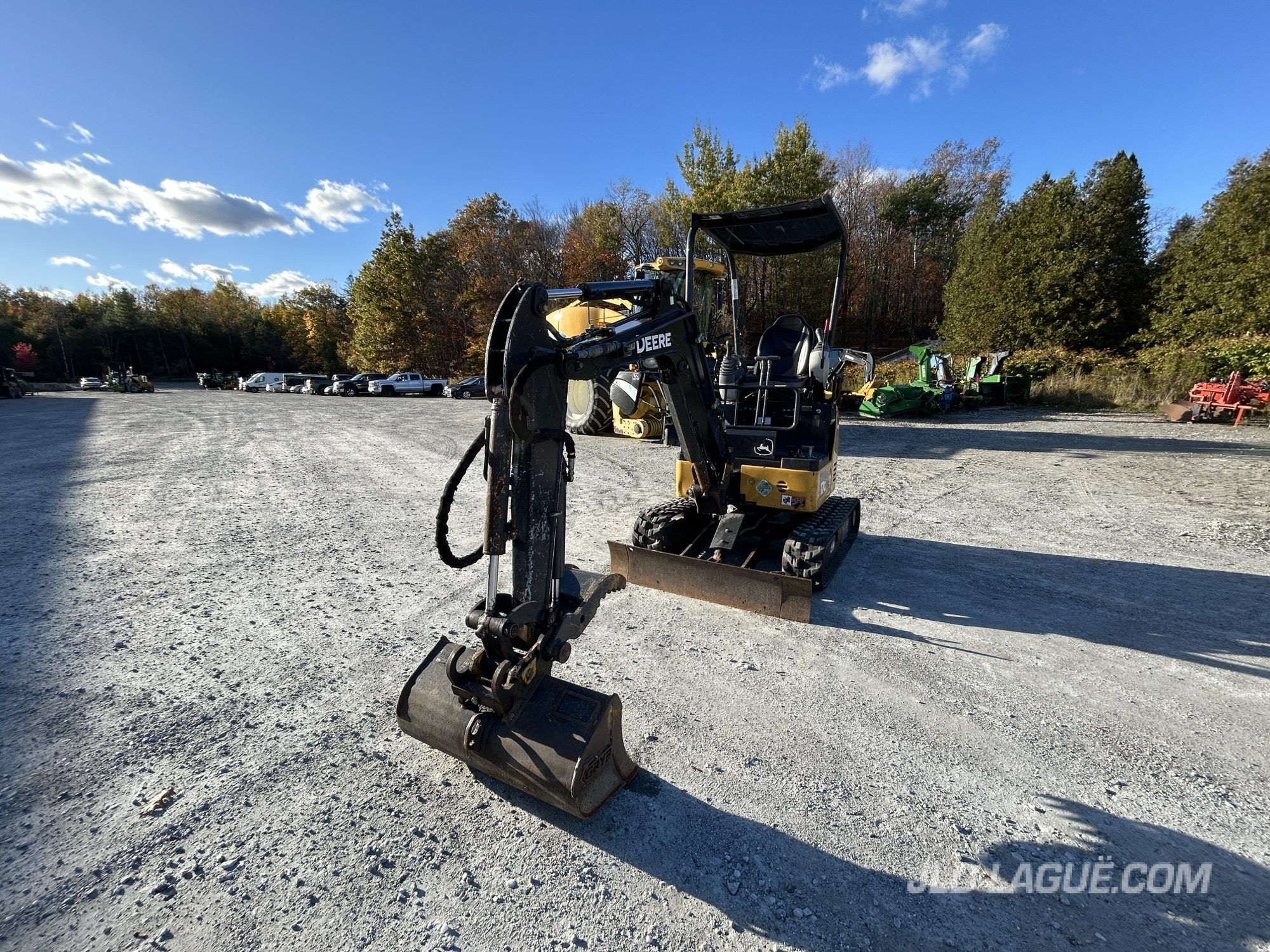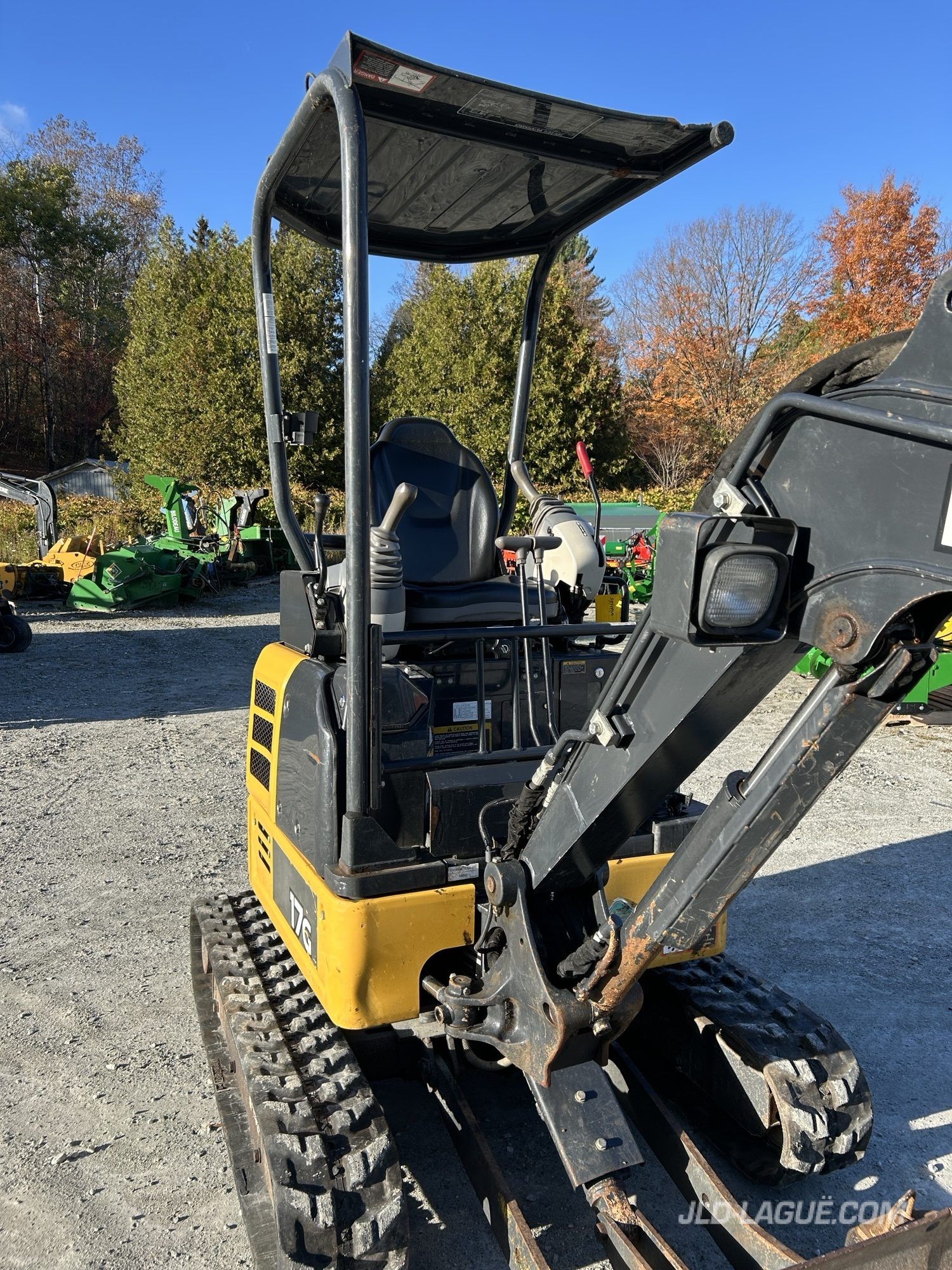 CAB POSTE OUVERT, SANS A/C, CHENILLE CAOUTCHOU, 50%, ELCAIRAGE EXTERIEUR HALOGEN, CHASSIS FIXE, 1 SORTIE HYDRAULIQUE AUX, ATTACH RAPIDE MEC, GODET # 1 18 », GODET # 2 30 », BRAS COURT, POUCE HYDRAULIQUE, BOOM SWING, LAME DE REMBLAI ANGLE FIXE,
