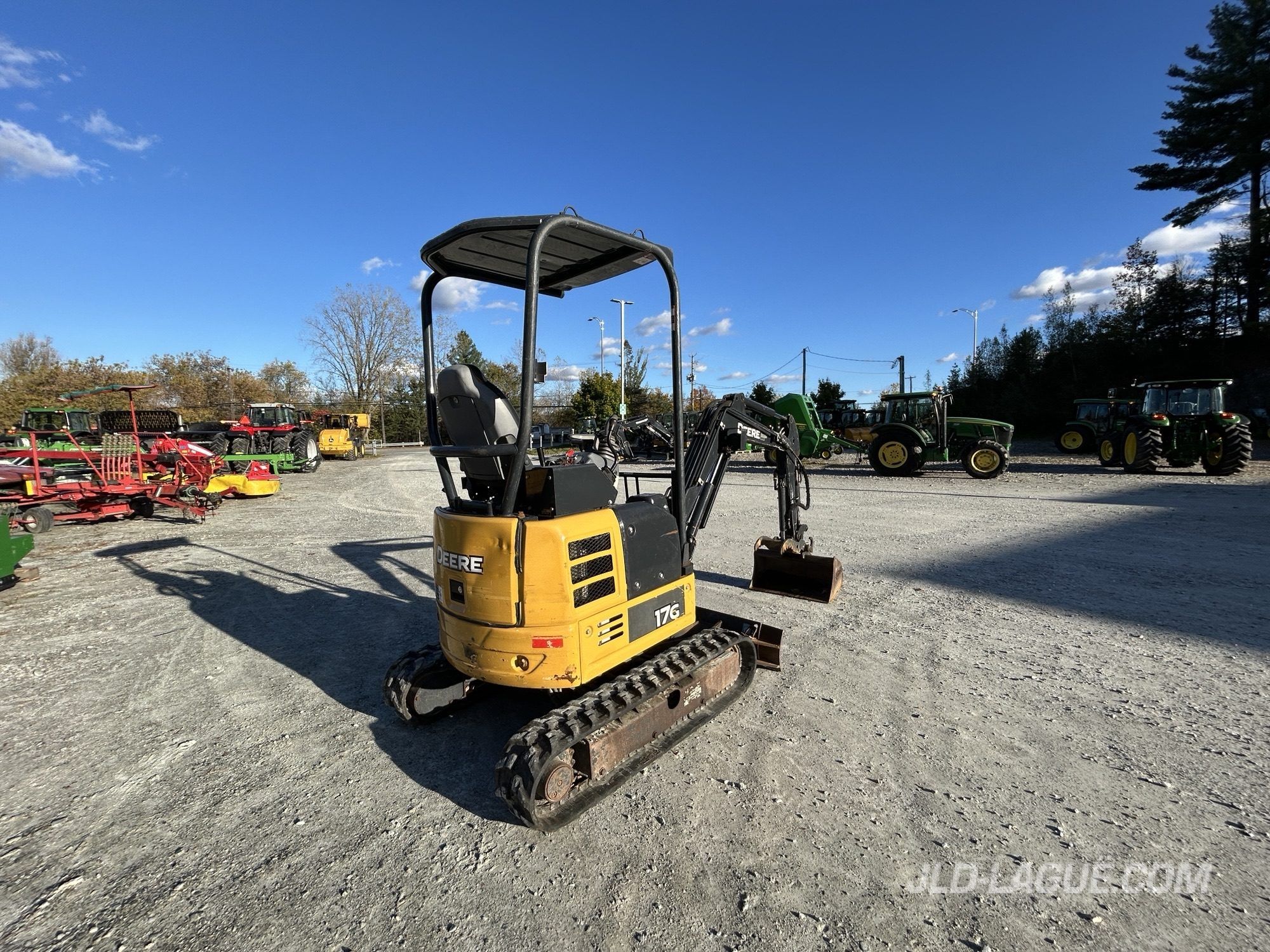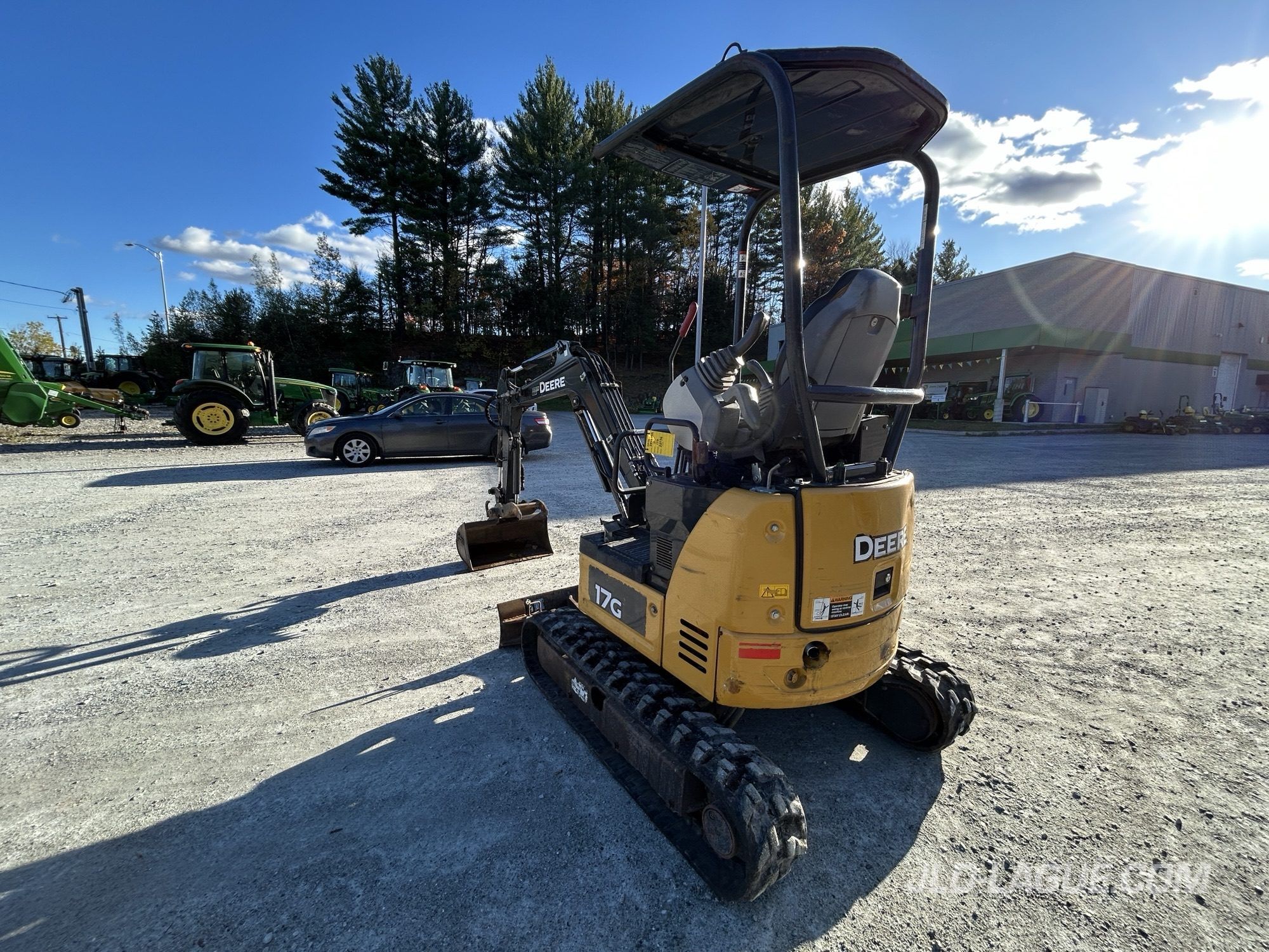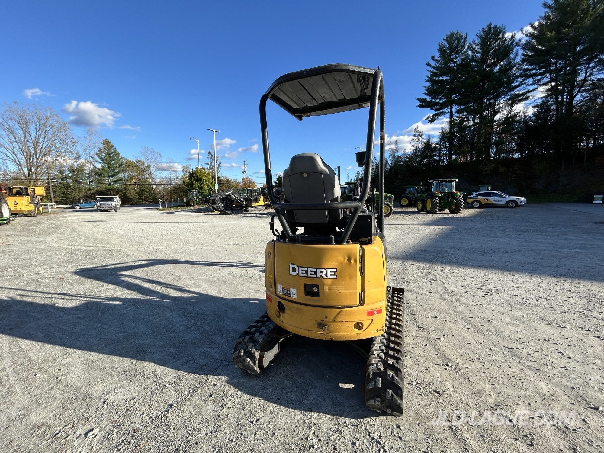 CAB POSTE OUVERT, SANS A/C, CHENILLE CAOUTCHOU, 50%, ELCAIRAGE EXTERIEUR HALOGEN, CHASSIS FIXE, 1 SORTIE HYDRAULIQUE AUX, ATTACH RAPIDE MEC, GODET # 1 18 », GODET # 2 30 », BRAS COURT, POUCE HYDRAULIQUE, BOOM SWING, LAME DE REMBLAI ANGLE FIXE,