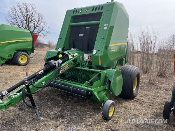JD 450M, 4X5,  »PRECUTTER », CORDE ET FILET, CHAMBRE VARIABLE, PRESSION DE BALLE VARIABLE, PANIER LARGE, RELEVAGE DE PANIER HYDRAULIC, RAMPE A BALLE, PTO 540, 14 COUTEAUX, PNEUS : HAUTE FLOTTAISON 21.5-16.1 90% BON,