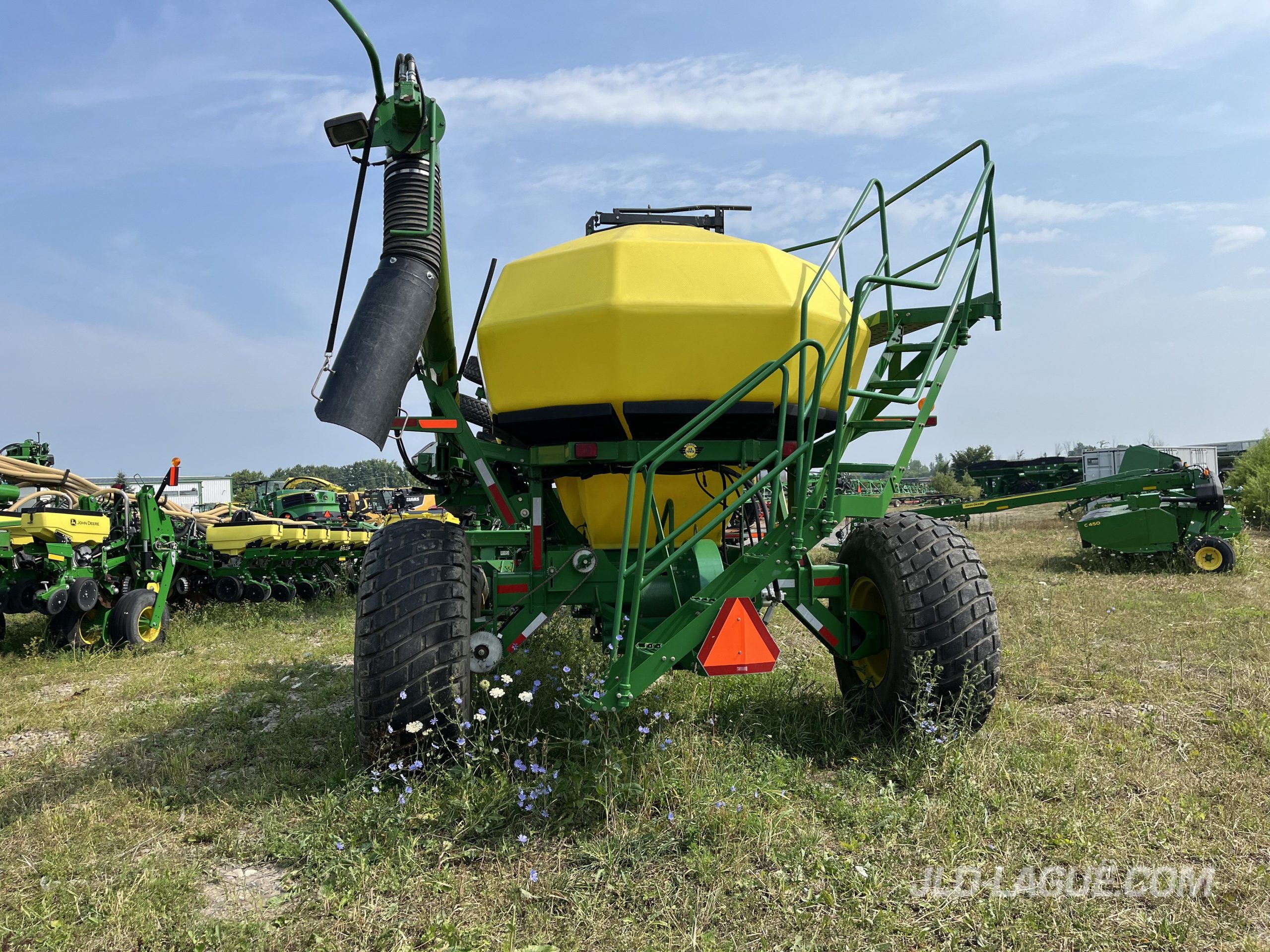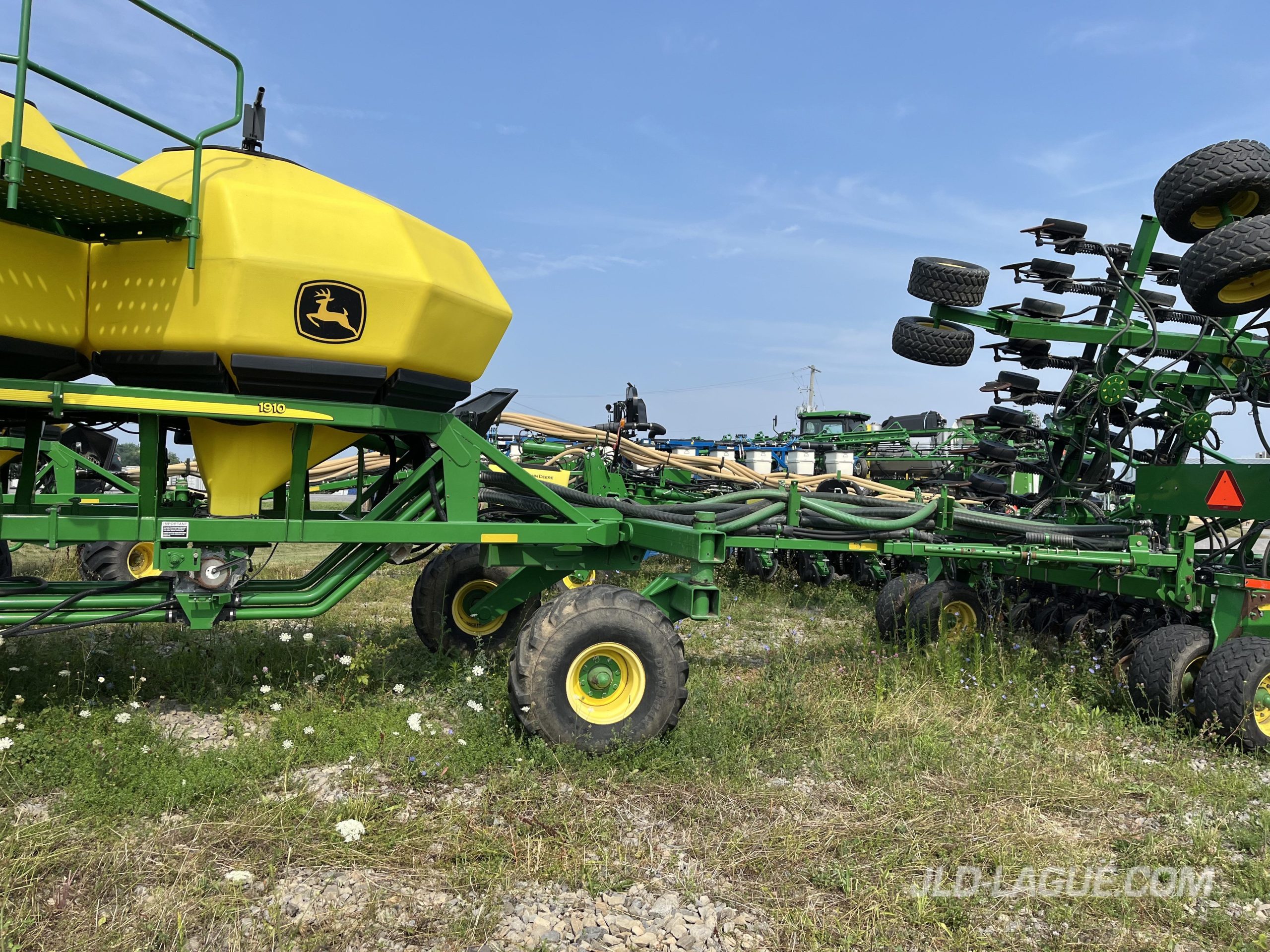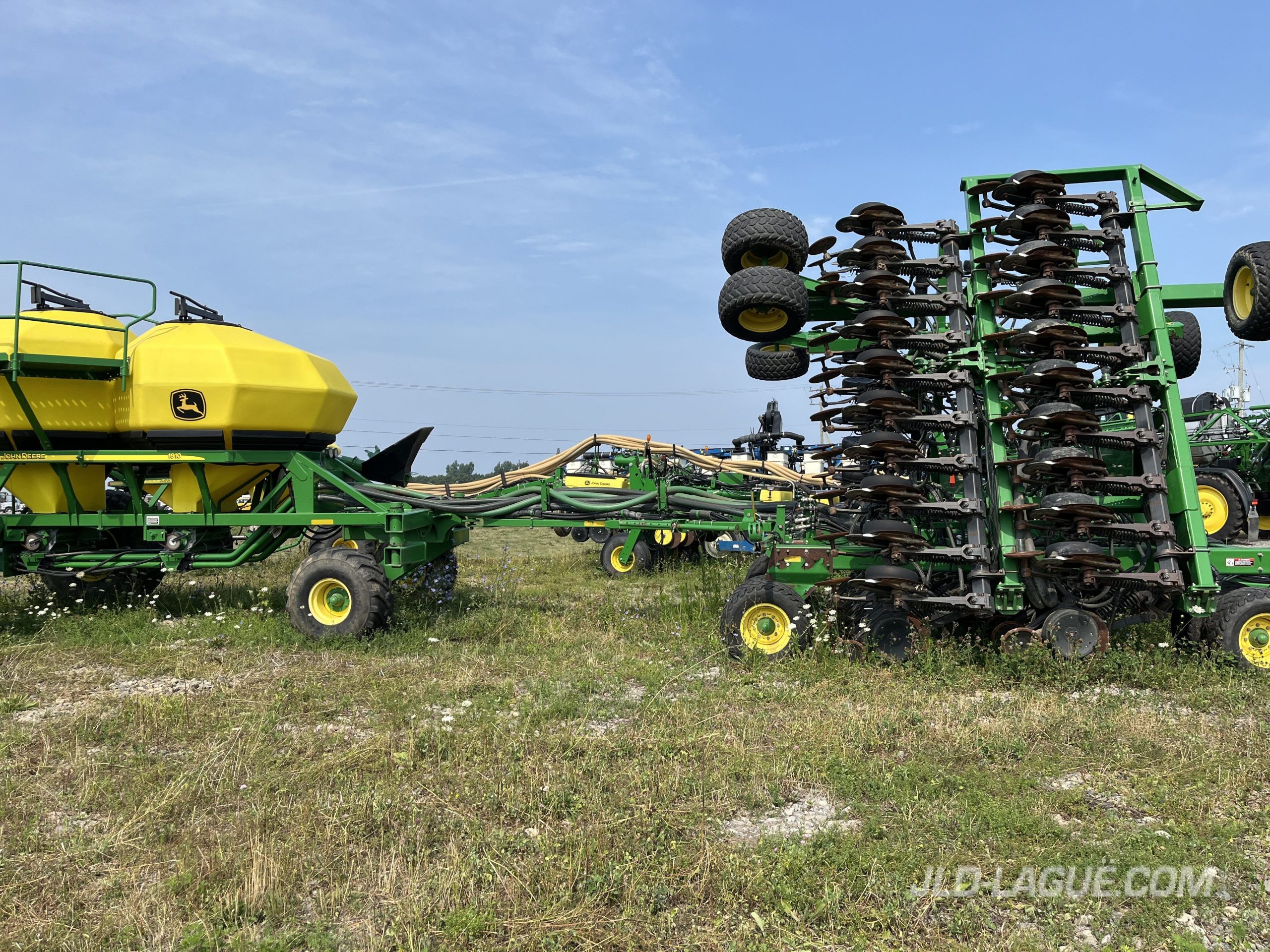 JD 1890 40′ , 64 X7.5 » SEMOIR NO-TIIL, JD 1910 CART ENGRAIS ET SEMENCE, 2 RESERVOIRS, TIREE EN ARRIERE, VIS DE CHARGEMENT, SEMOIR AVEC ROUES JAUGES ET ROUES PRESSEUSES, MONITEUR BRUN AVEC DISPLAY,