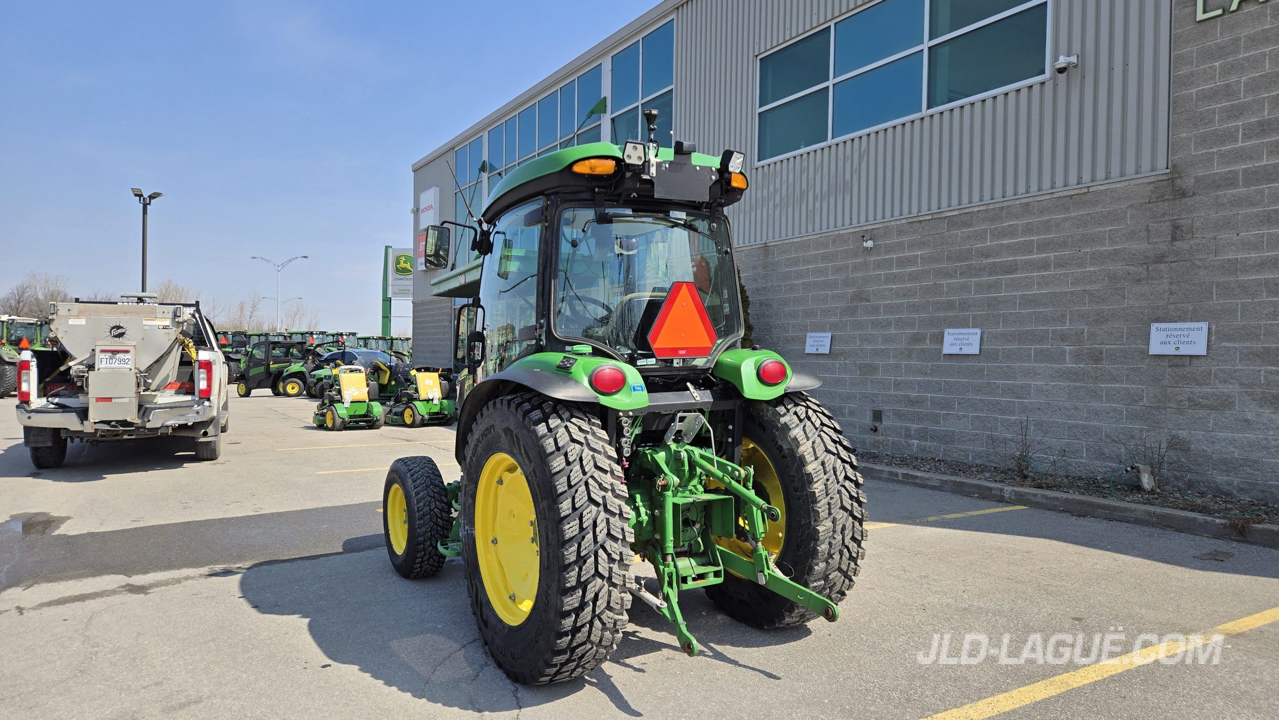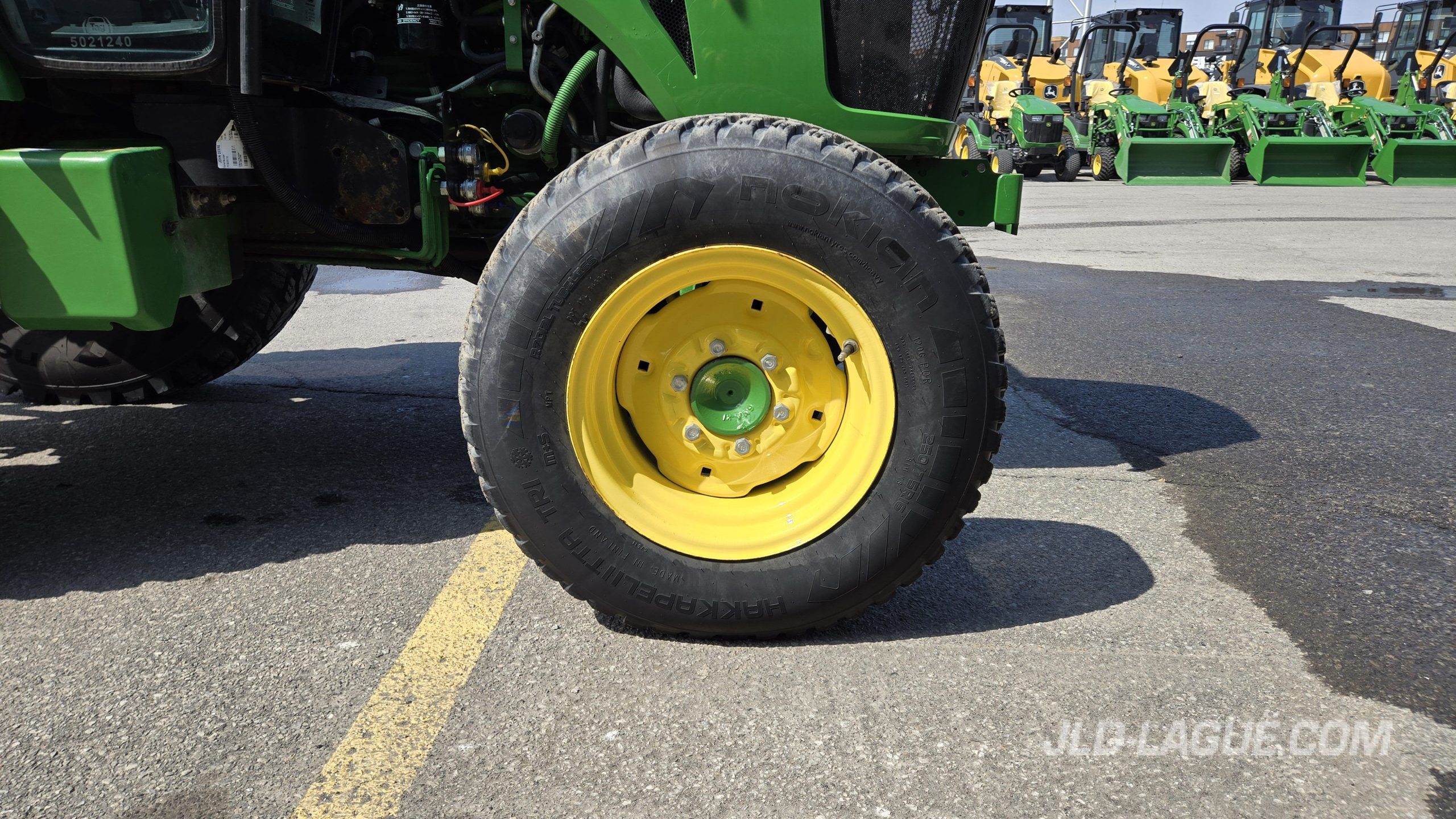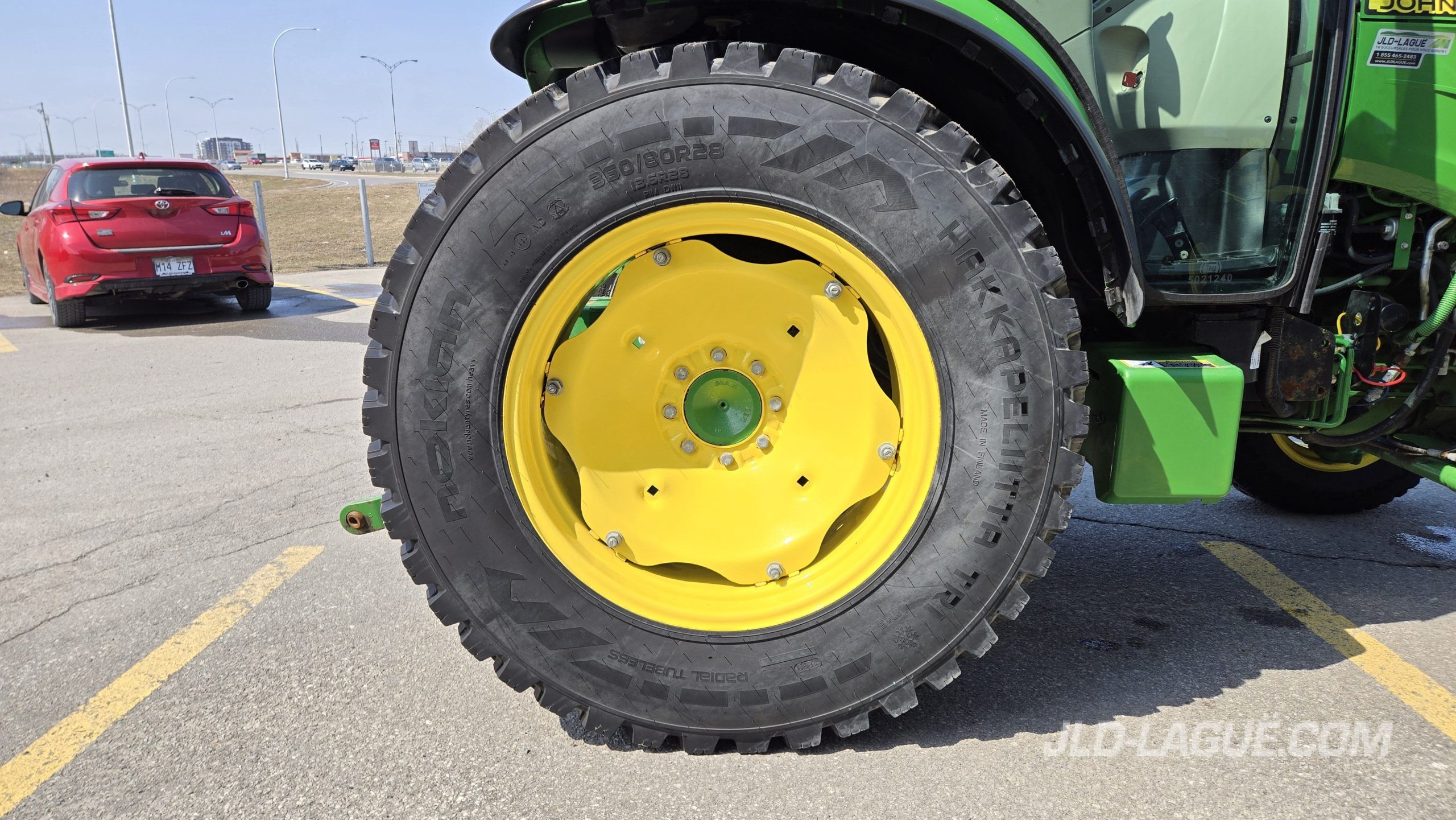 66HP MOTEUR, 58HP PTO, TRANS. HYDRO, 360/80R28 NOKIAN 75% BON, 250/75R16 NOKIAN 50% BON, 2 SCV, PTO 540, EXT. AILES ARR., ESSUIE-GLACE ARR., GYROPHARE, LUMIERES AU LED, JOYSTICK MEC. 2FTS AVEC MID-VALVE, GRANTIE 2000HRS / 21 NOV. 2029 JD,