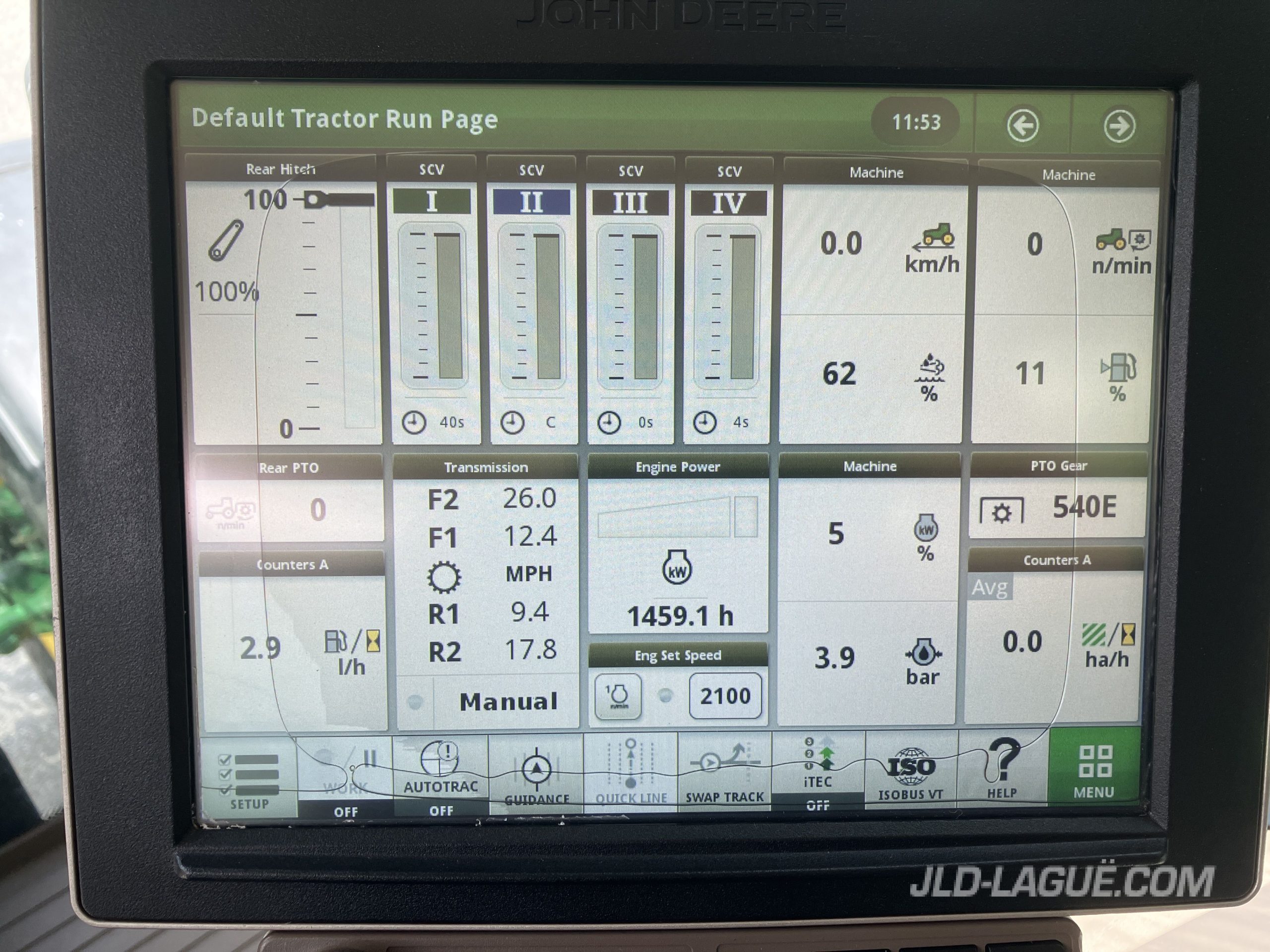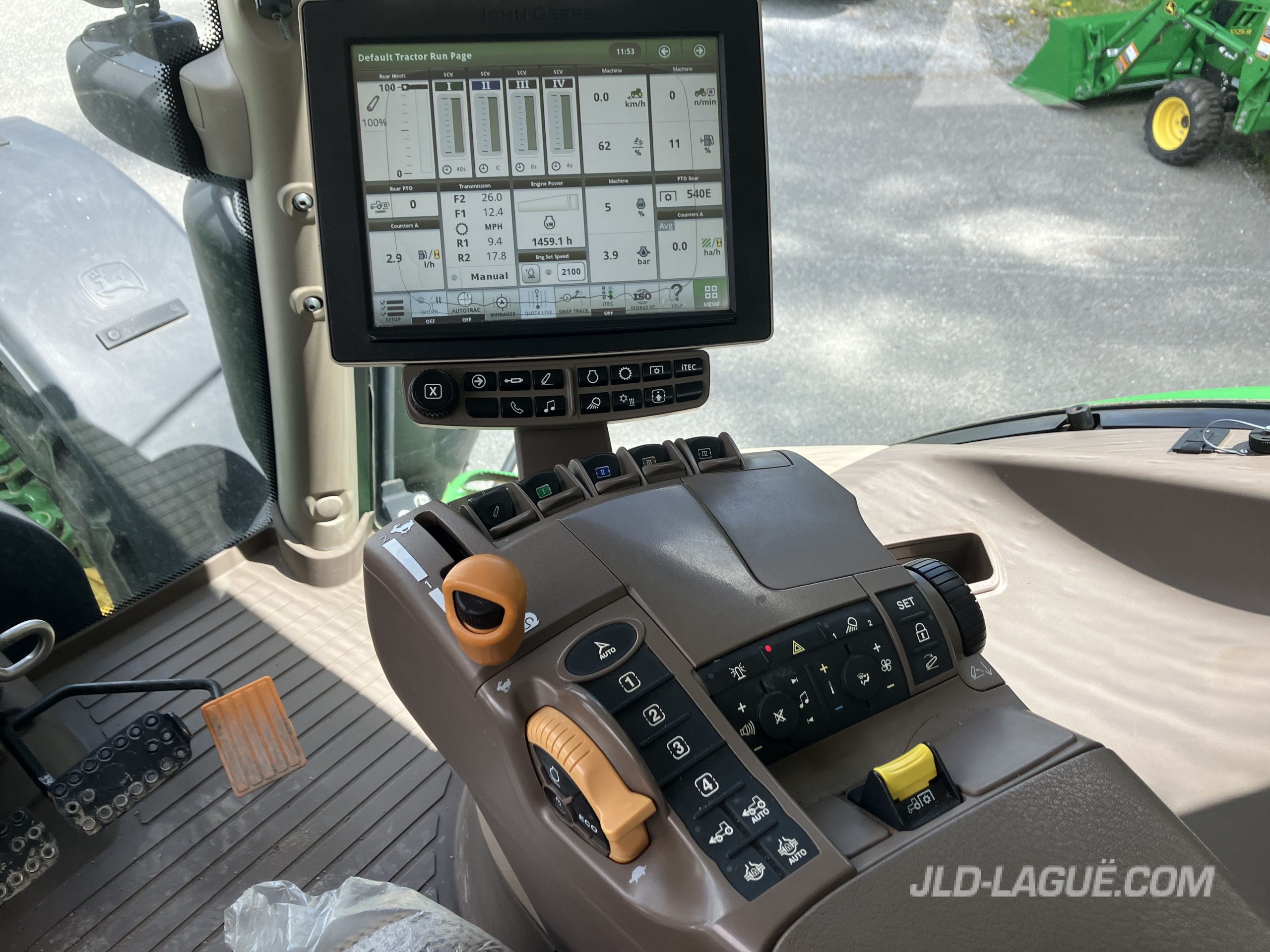 HP MOTEUR: 195, HP PTO: 159, TRANS. IVT 40KM LHR, 520/85R42 GY R1W, 75% BON, 48/70R30 GY R1W, 75% BON, 4 SCV, PTO (RPM): 540/1000 / 1000E, CABINE PREMIUM, PROCESSEUR JD 4600, ECRAN COULEUR 10 », COMPATIBLE JD LINK, AILES AVANTS, ESSUIE-GLACE ARR., GYROPHARE, MIROIRS, SIEGE PASSAGER, LUMIERES D’EXTREMITEES, SUSPENSION ESSIEU AVANT TLS, PESEE DE BASE AVANT AVEC 12 PESEES, FILLAGE AMS( GREENSTAR READY ), TERMINAL ISOBUS,