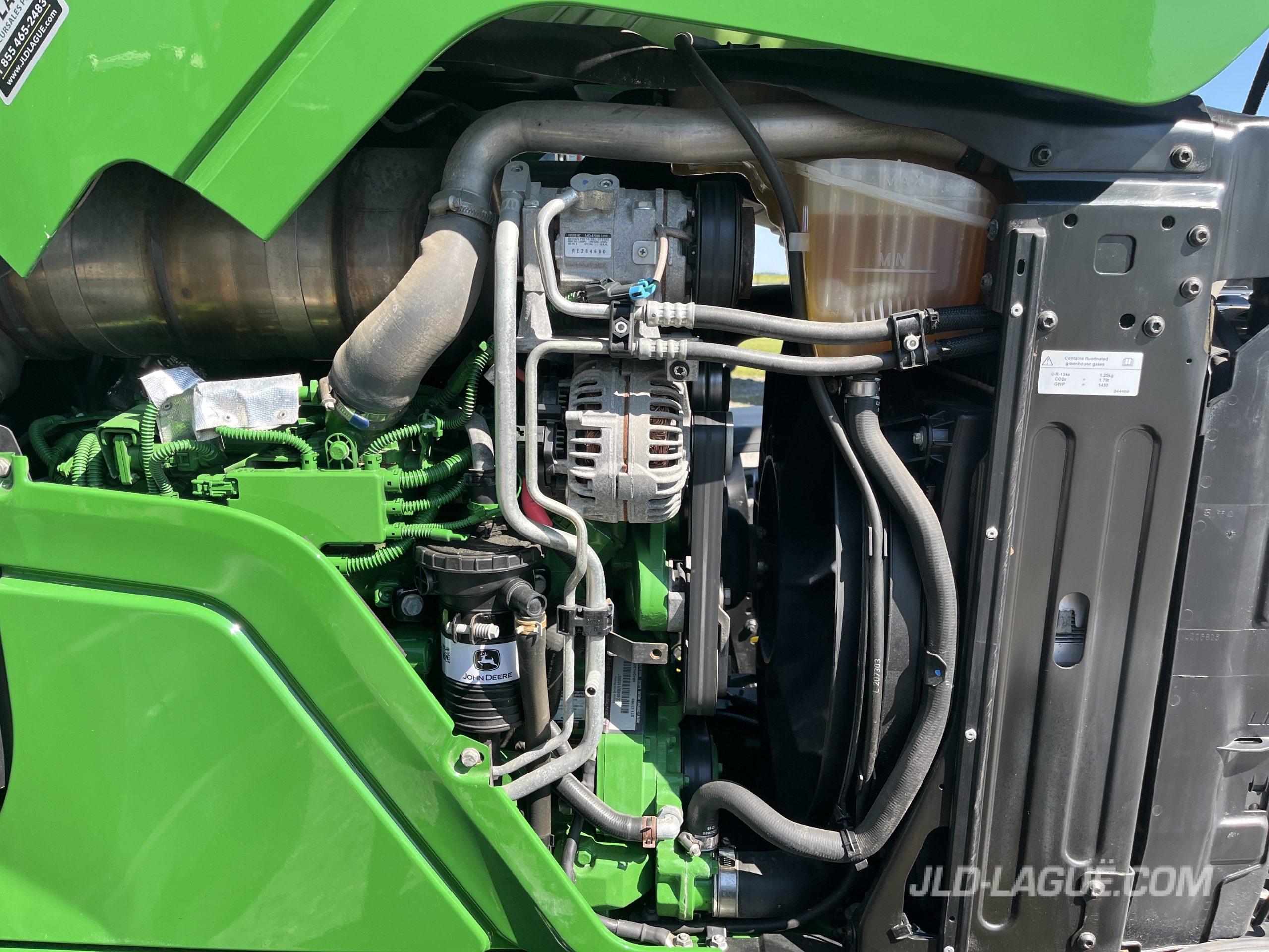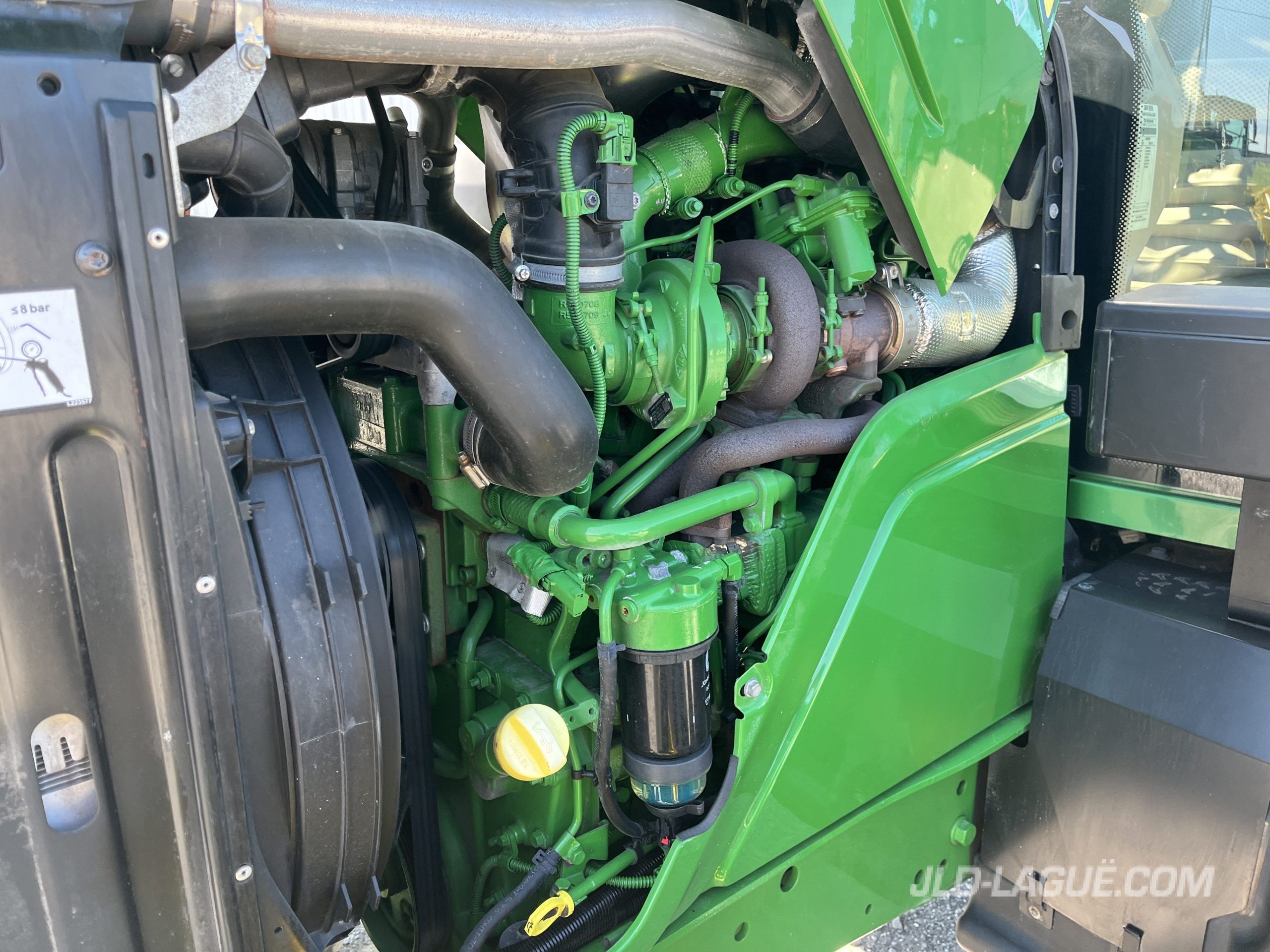 110HP MOTEUR, 86HP PTO, TRANS. PQ 24/24 40KM LHR, 480/80R34 NOKIAN 90% BON, 400/80R24 NOKIAN 75% BON, 2 SCV, PTO 540/1000, AILES AVANTS, ESSUIE-GLACE ARR., GYROPHARE, JOYSTICK MEC. SANS VALVE, PESEE DE BASE AVANT, GARANTIE 2000HRS / 14 OCT. 2025 JD,