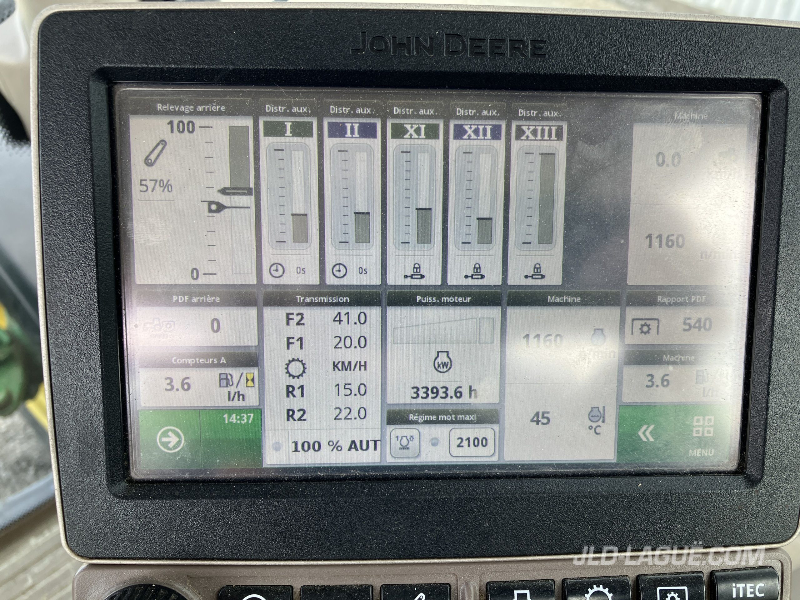 120HP MOTEUR, 100HP PTO, TRANS. IVT 40KM LHR, 460/85R38 R1 50% BON, 13.68R28 R1 25% BON, 2 SCV ,PTO 540/540E/ 1000, CABINE PREMIUM, CENTRE DES COMMANDES, JD 4100 PROCESSEUR, ECRAN COULEUR 7 », COMPATIBLE JD LINK, AILES AVANTS, EXT. AILES ARR., ESSUIE-GLACE ARR., MIROIRS, SIEGE PASSAGER, GYROPHARE, JOYSTICK ELECT. 3FTS,