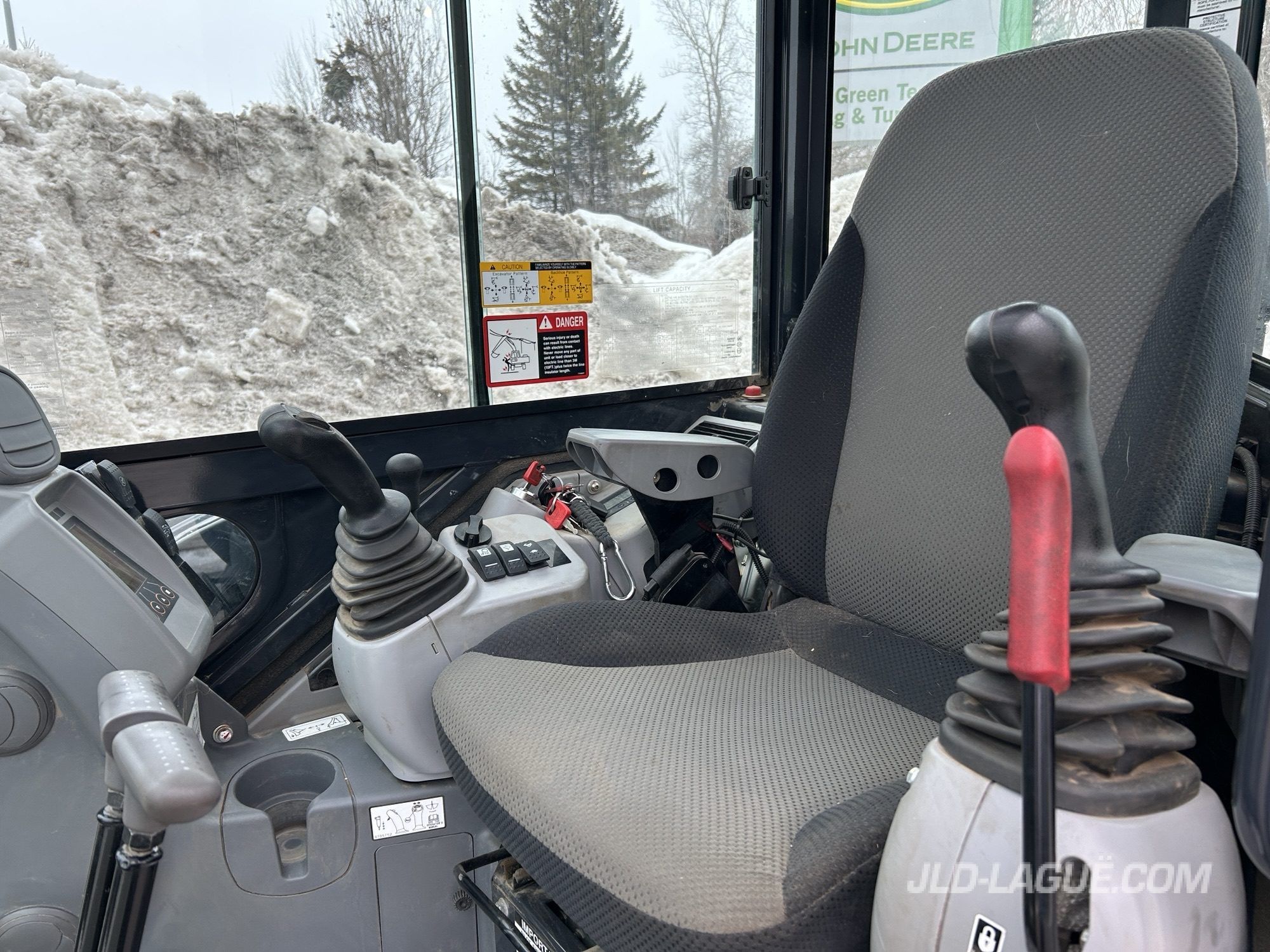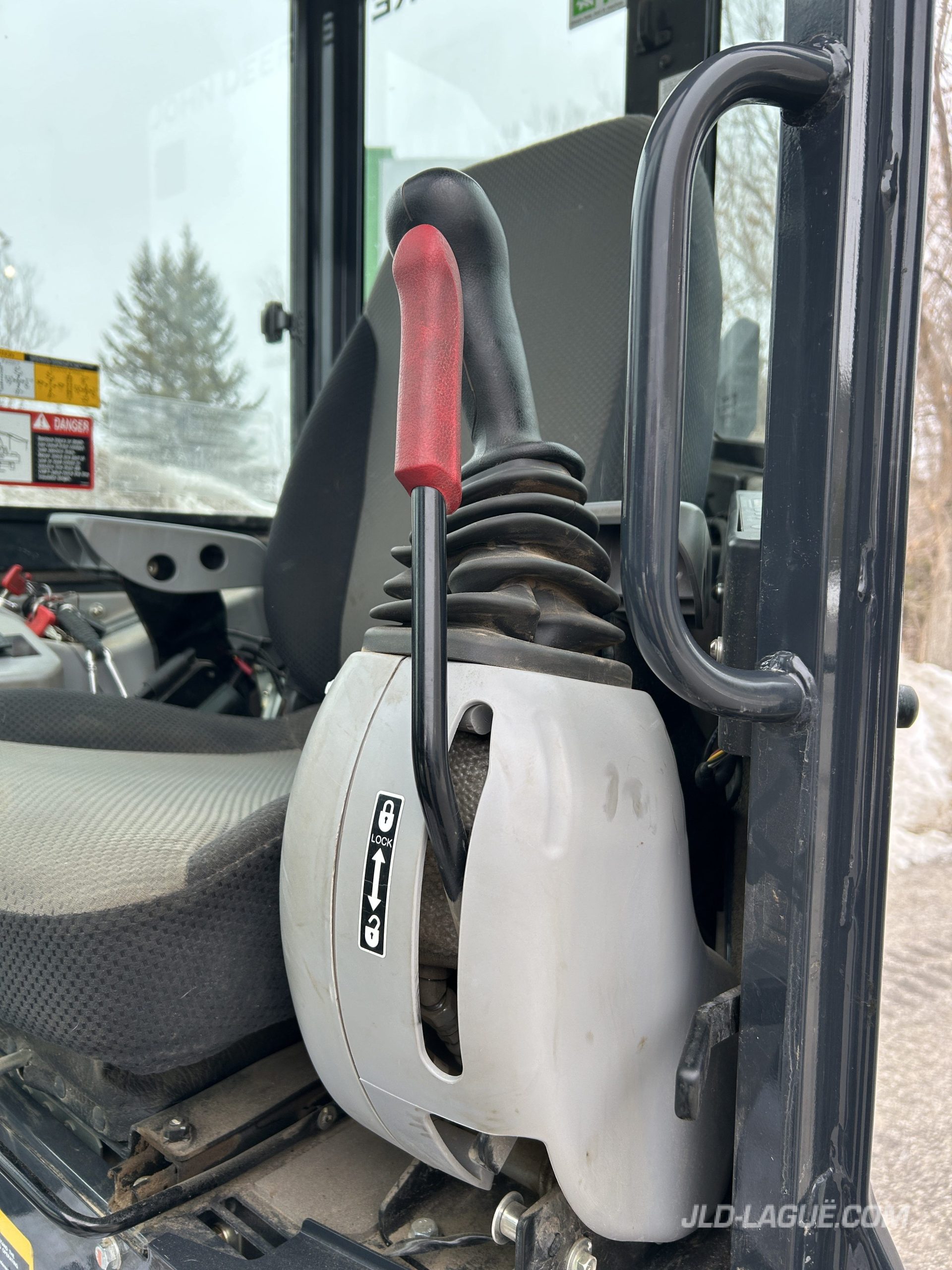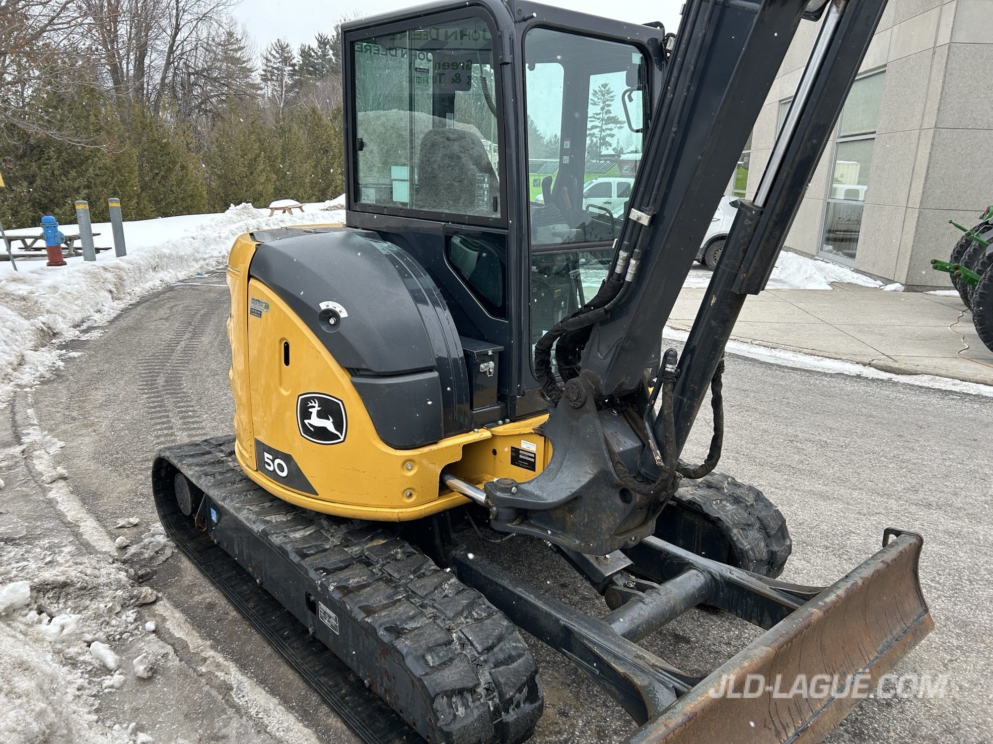 JD 50P, CAB W/ A/C, RUBBER TRACK 25% GOOD, JOYSTICK, MANUAL BUCKET QUICK TACH, HYDRAULIC AUX. OUTLET, HYDRAULIC THUMB, 30” BUCKET, 48′ BUCKET, WARRANTY 2000HRS / APRIL 15 2029 JD,