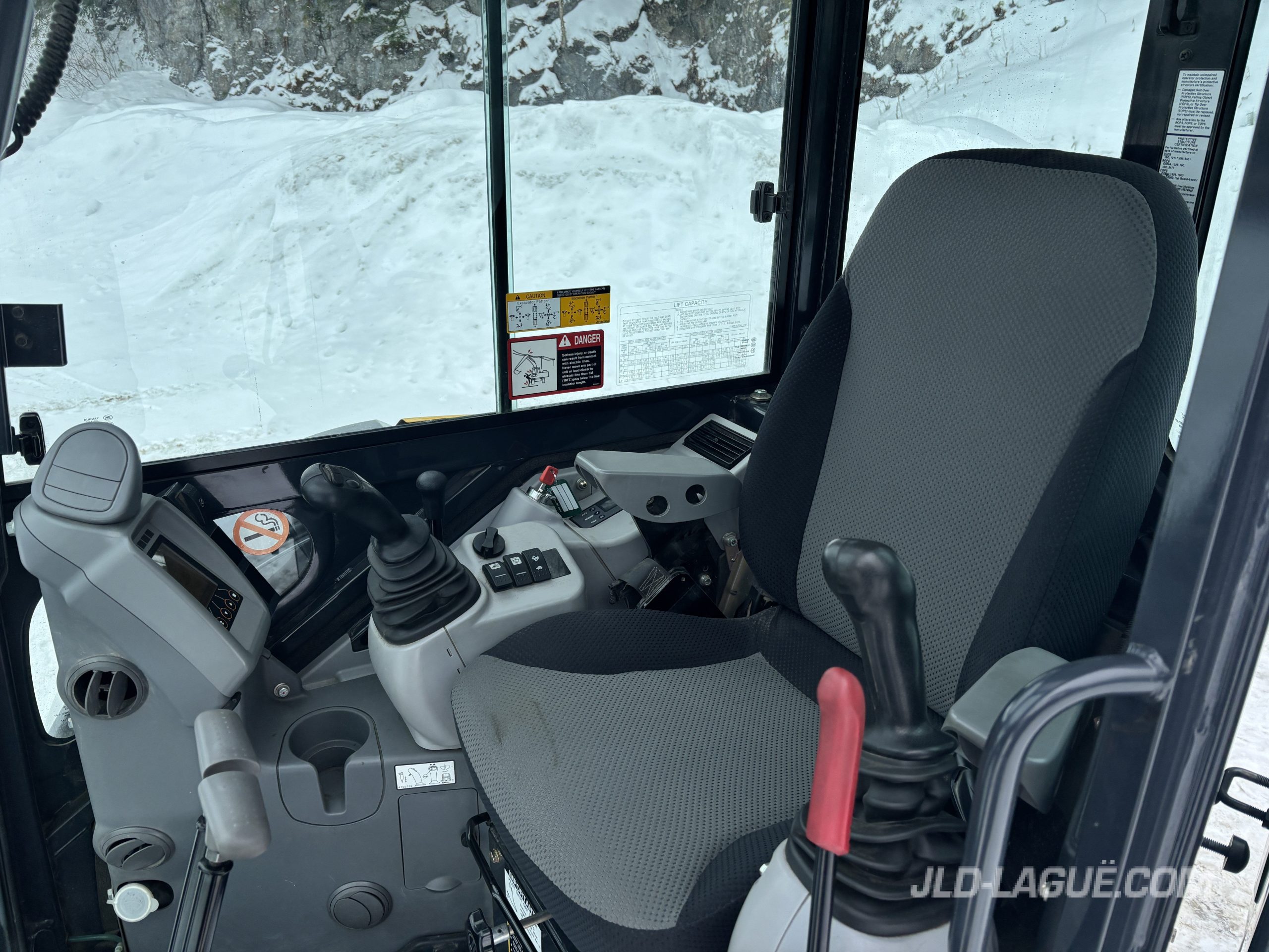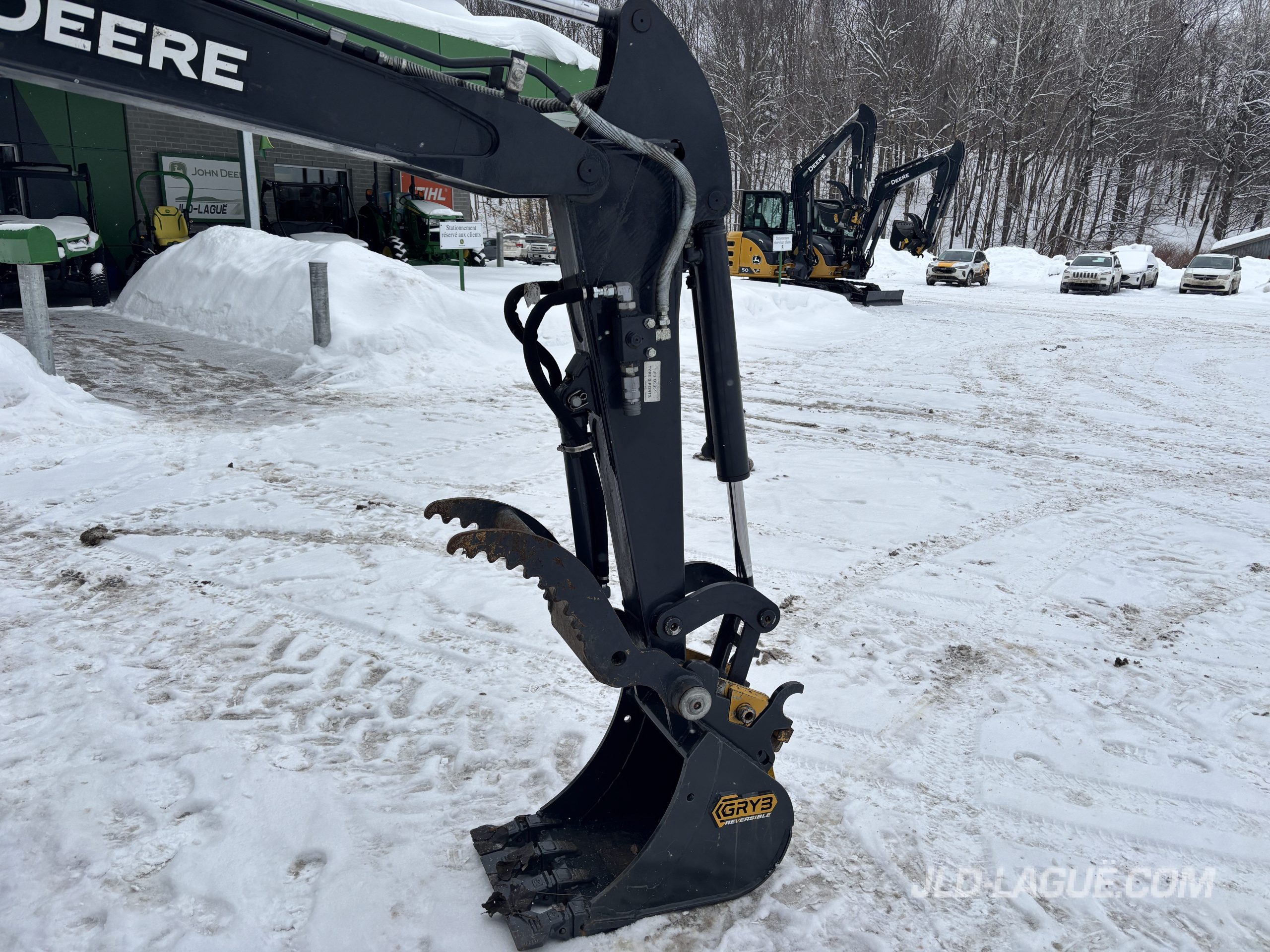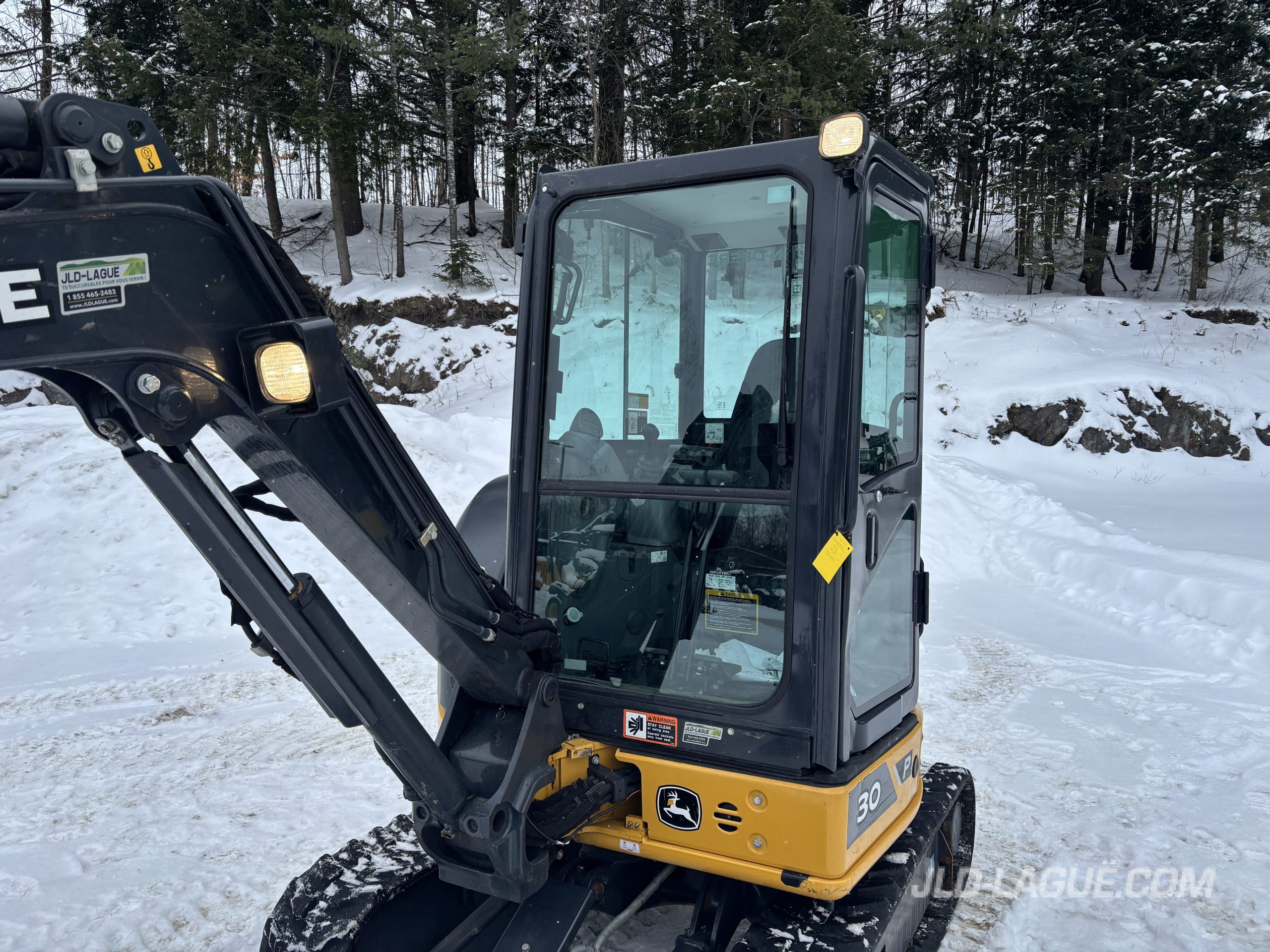 JD 30P CAB W/ A/C, RUBBER TRACK 75% GOOD, JOYSTICK, MECHANICAL BUCKET QUICK TACH, HYDRAULIC AUX. OUTLET, HYDRAULIC THUMB, BUCKET GRYB 16” INCLUDE, WARRANTY 2000HRS / APRIL 19 2027 JD,