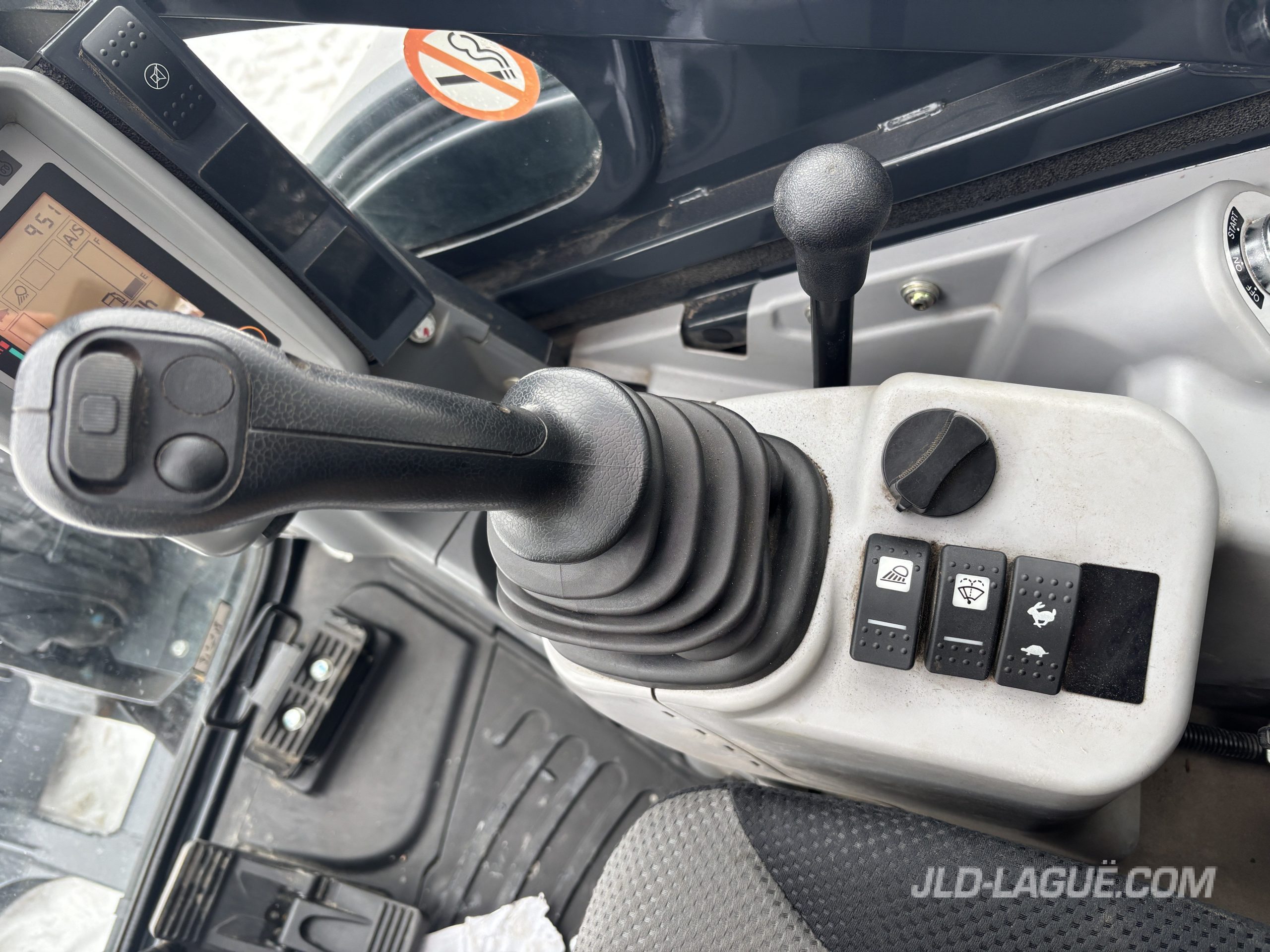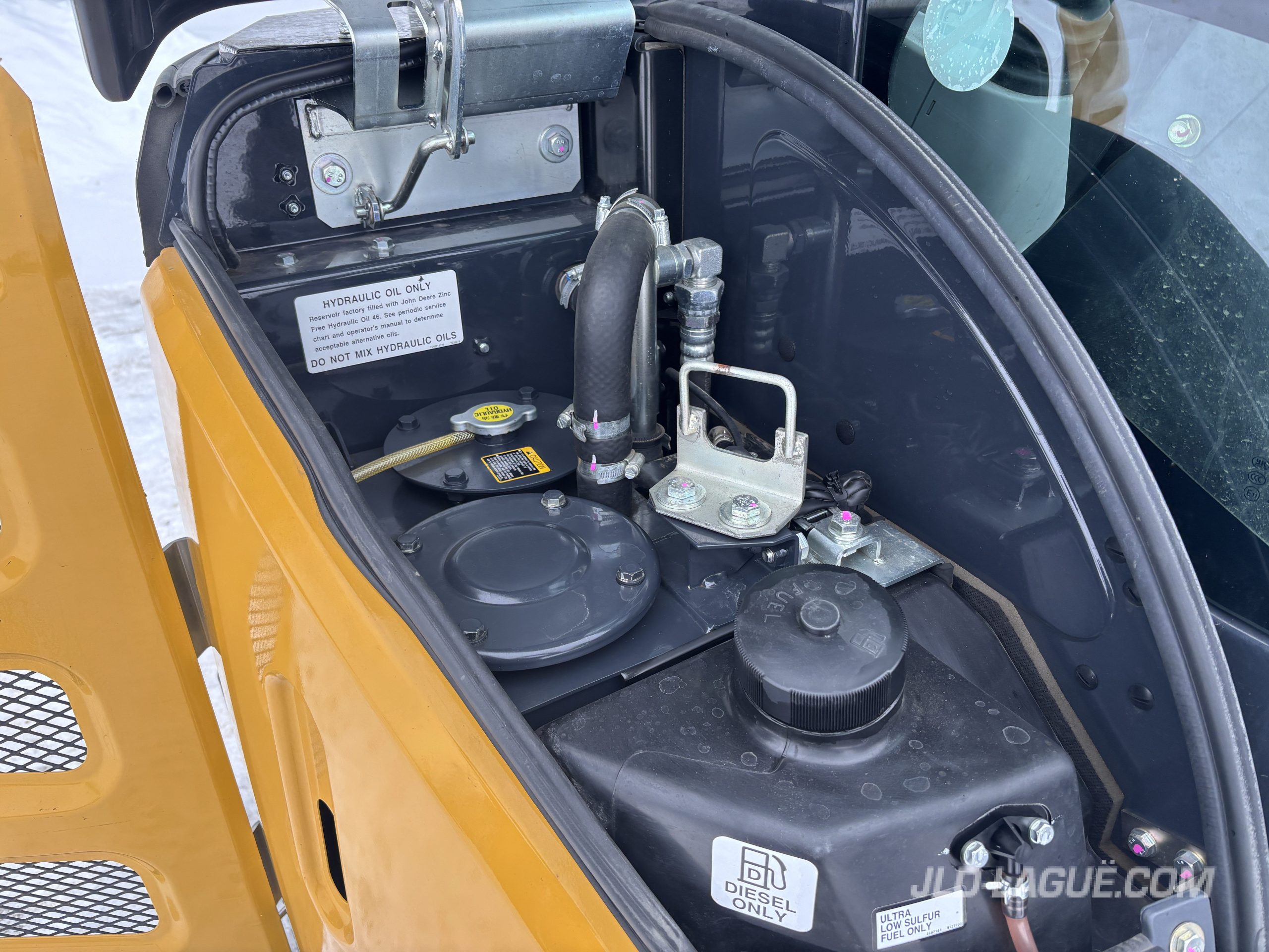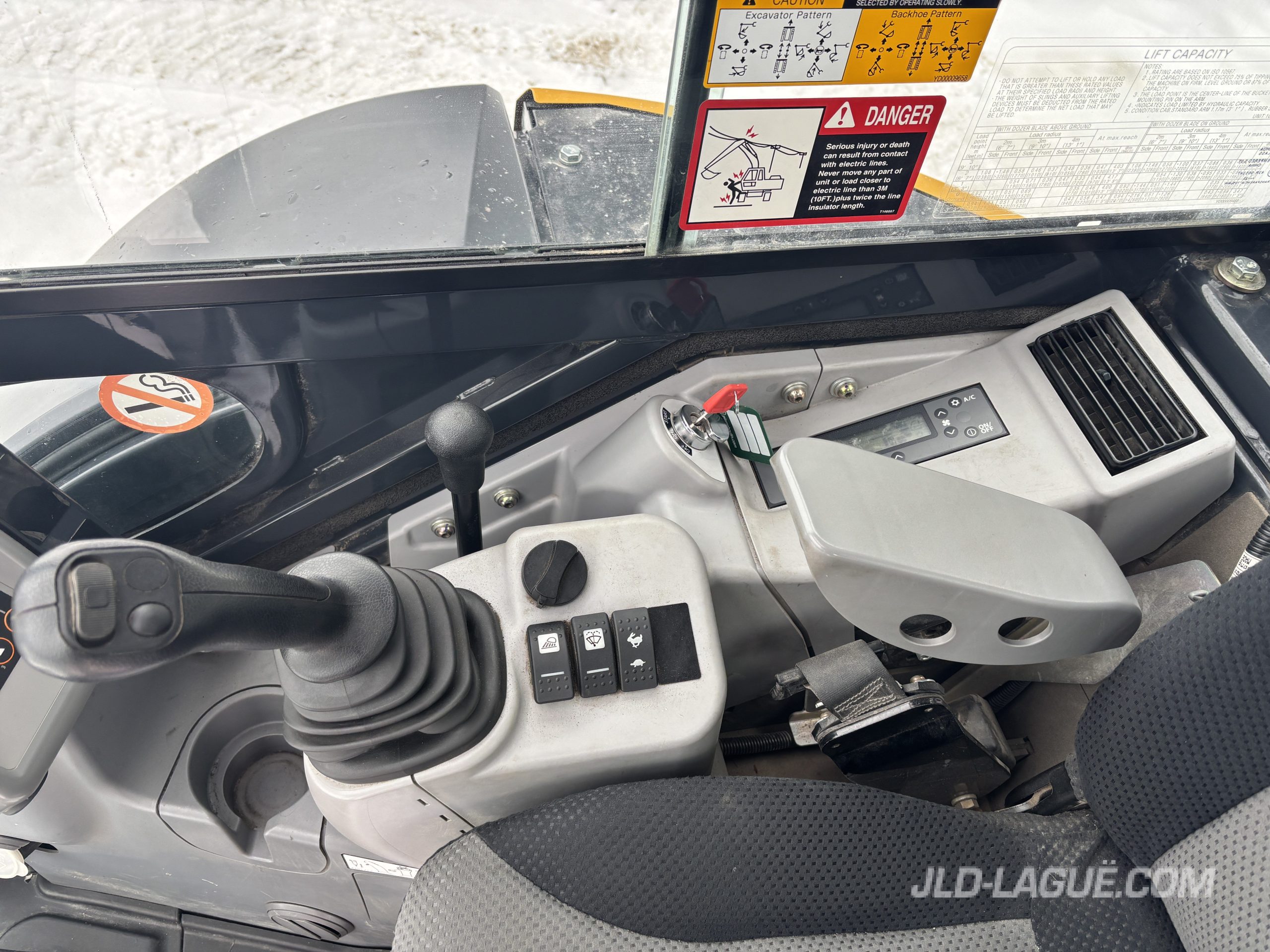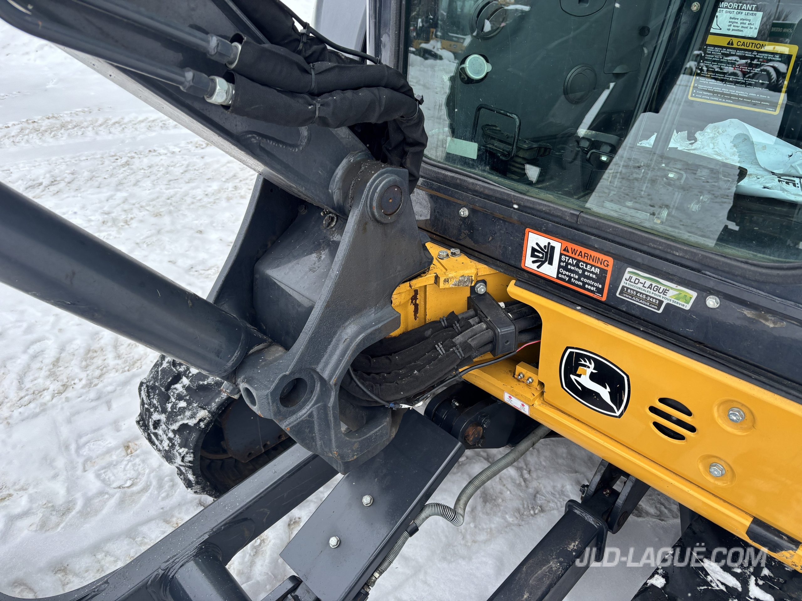 JD 30P CAB W/ A/C, RUBBER TRACK 75% GOOD, JOYSTICK, MECHANICAL BUCKET QUICK TACH, HYDRAULIC AUX. OUTLET, HYDRAULIC THUMB, BUCKET GRYB 16” INCLUDE, WARRANTY 2000HRS / APRIL 19 2027 JD,