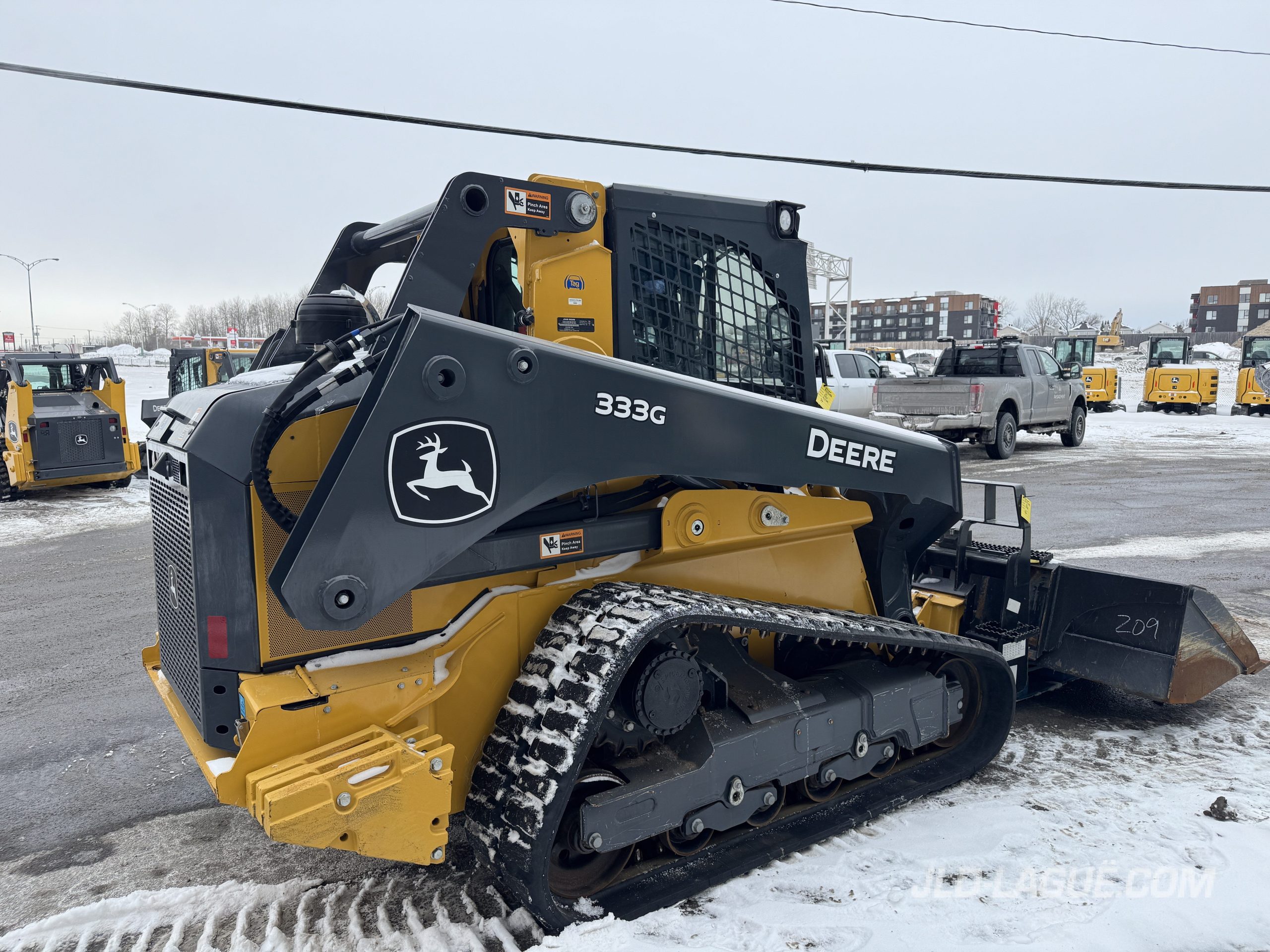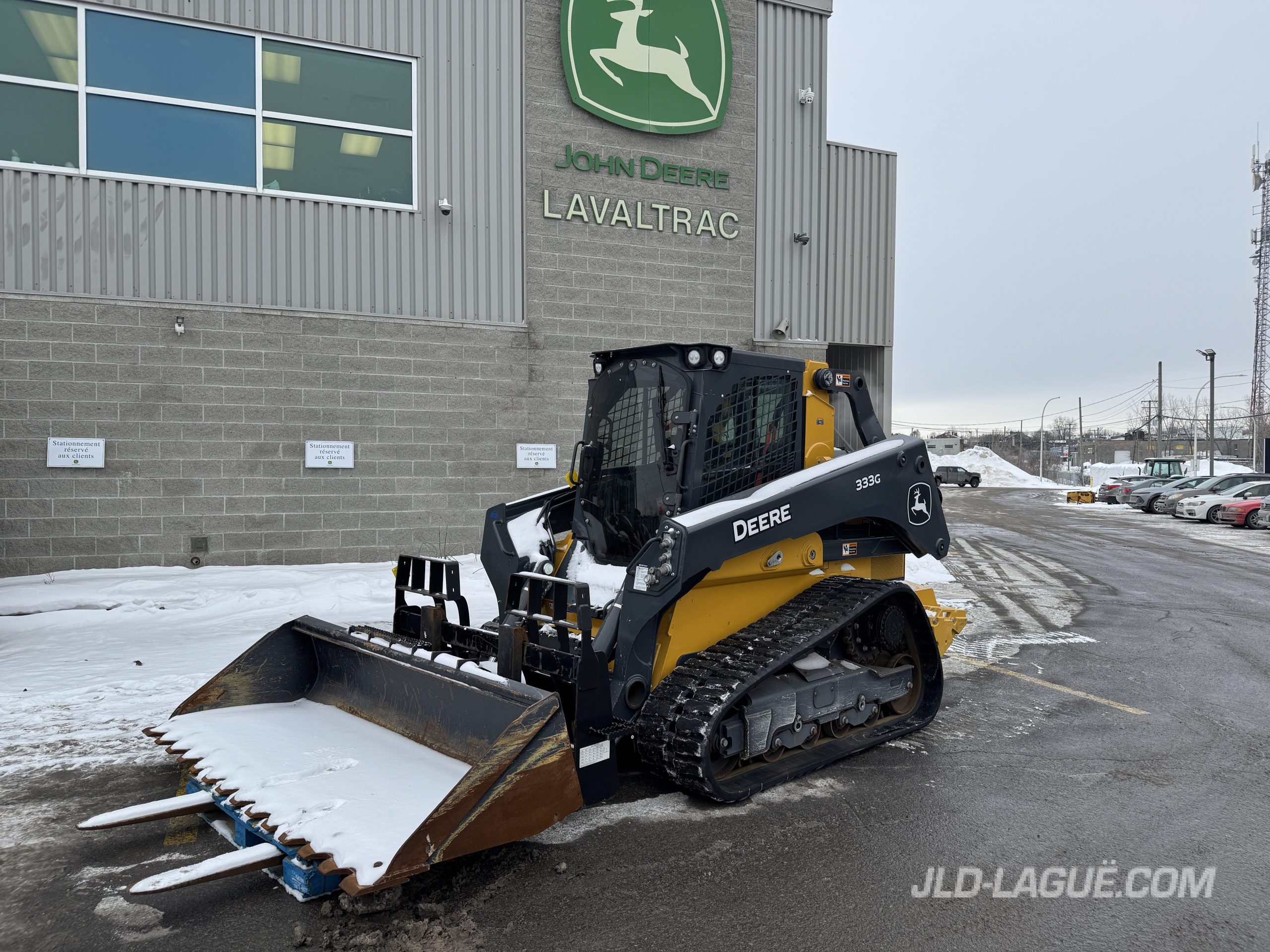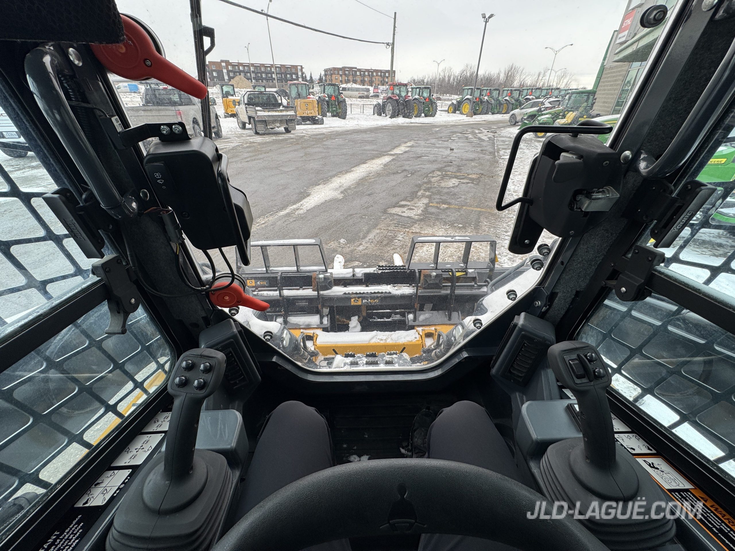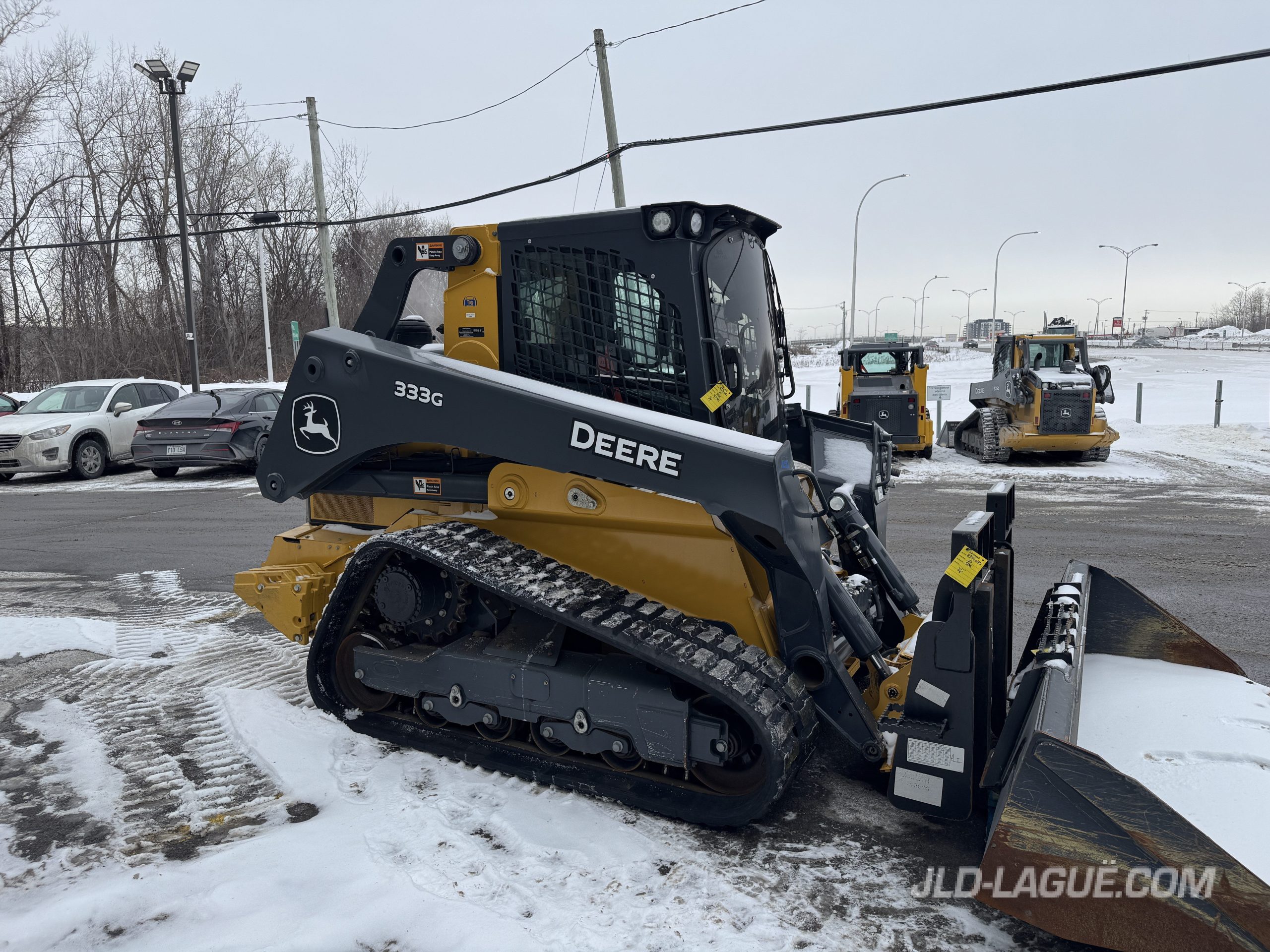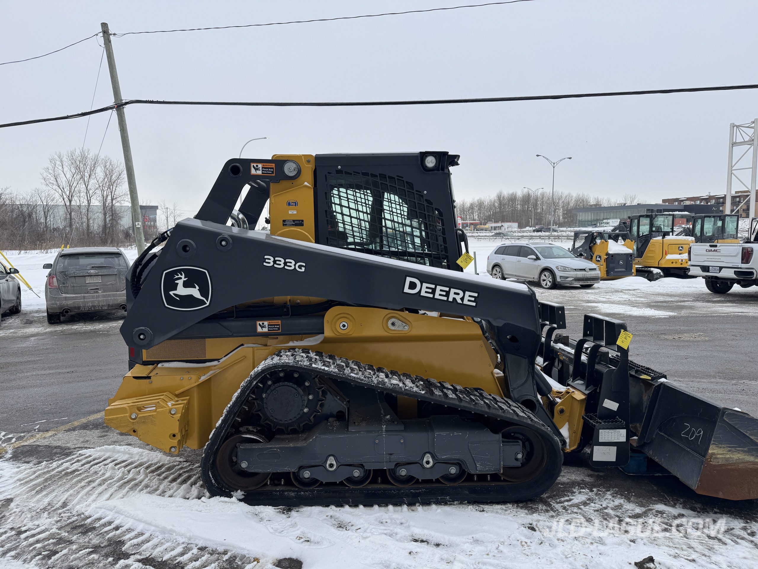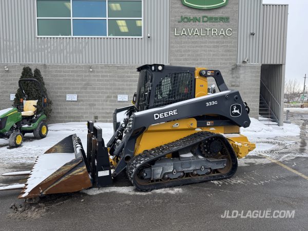 JD 333G, CAB W/ A/C, RUBBER TRACK 50% GOOD, JOYSTICK, ELECTRIC BUCKET QUICK TACH, HI-FLOW HYDR. PUMP, RIDE CONTROL, AUX. HYDRAULIC OUTLET, ENG. HP 95, 6 REAR WEIGHTS, BACK UP CAMERA, 90” BUCKET, PALLET FORK, WARRANTY 2000HRS / MAY 26 2026 JD,