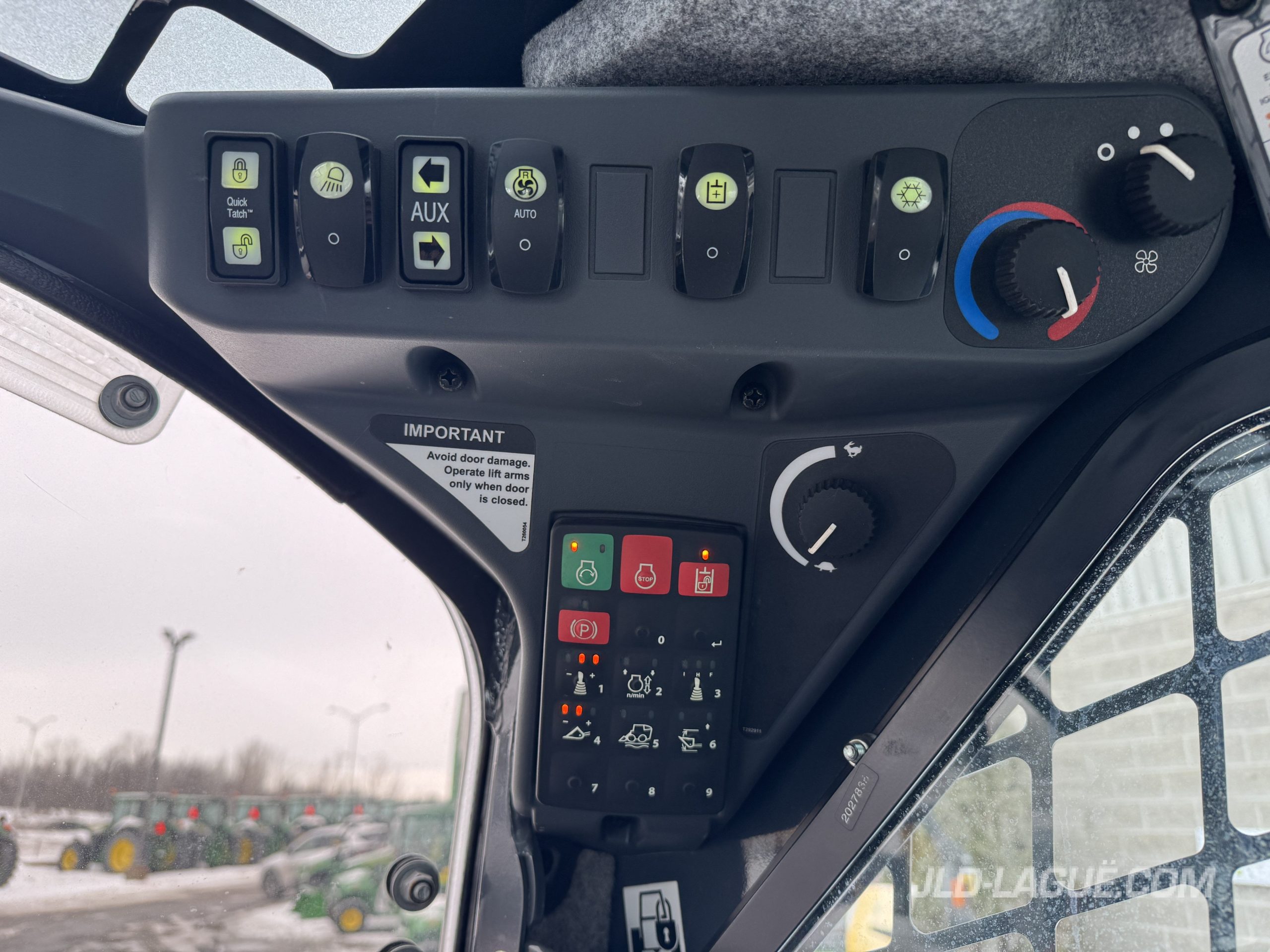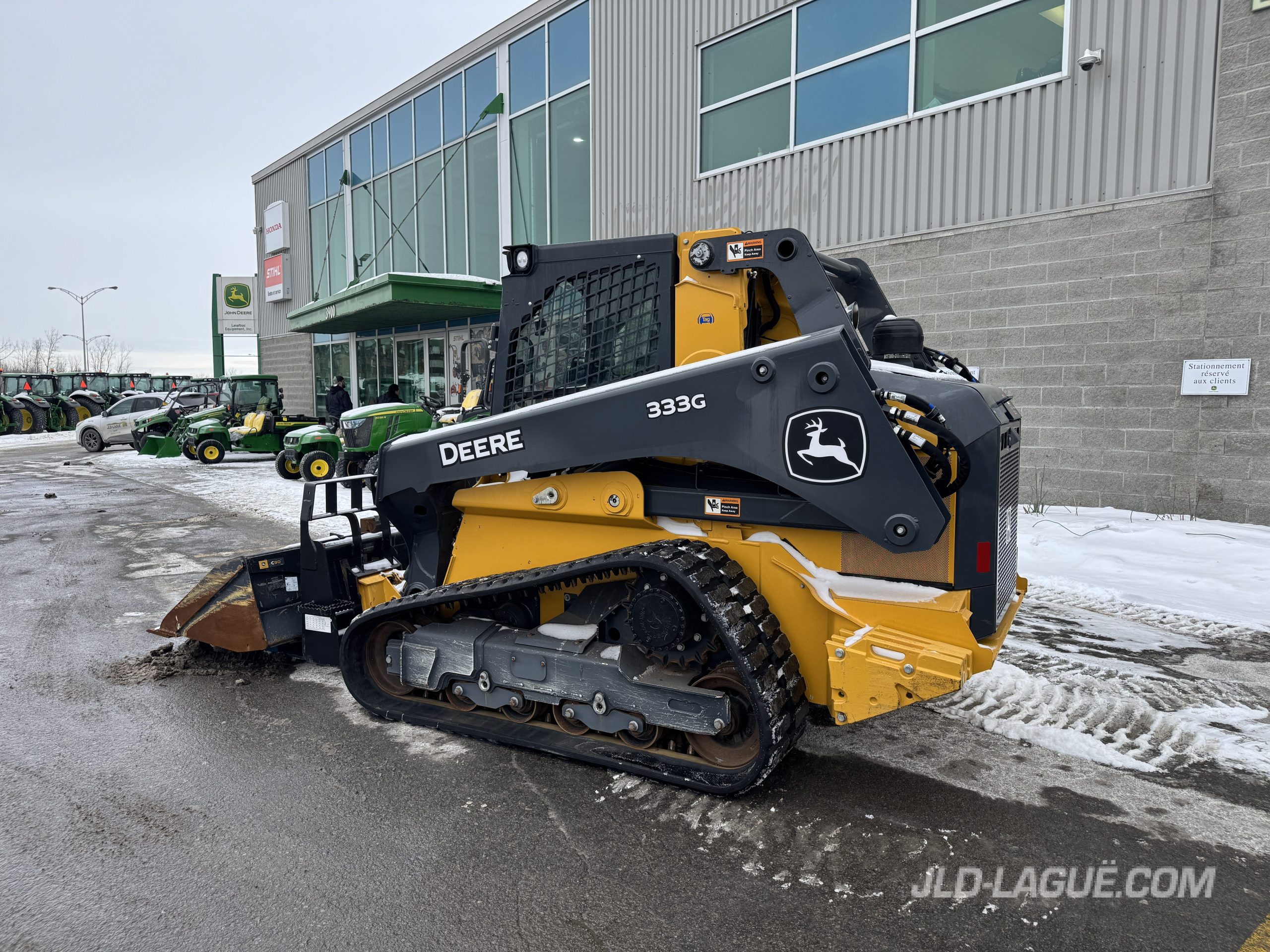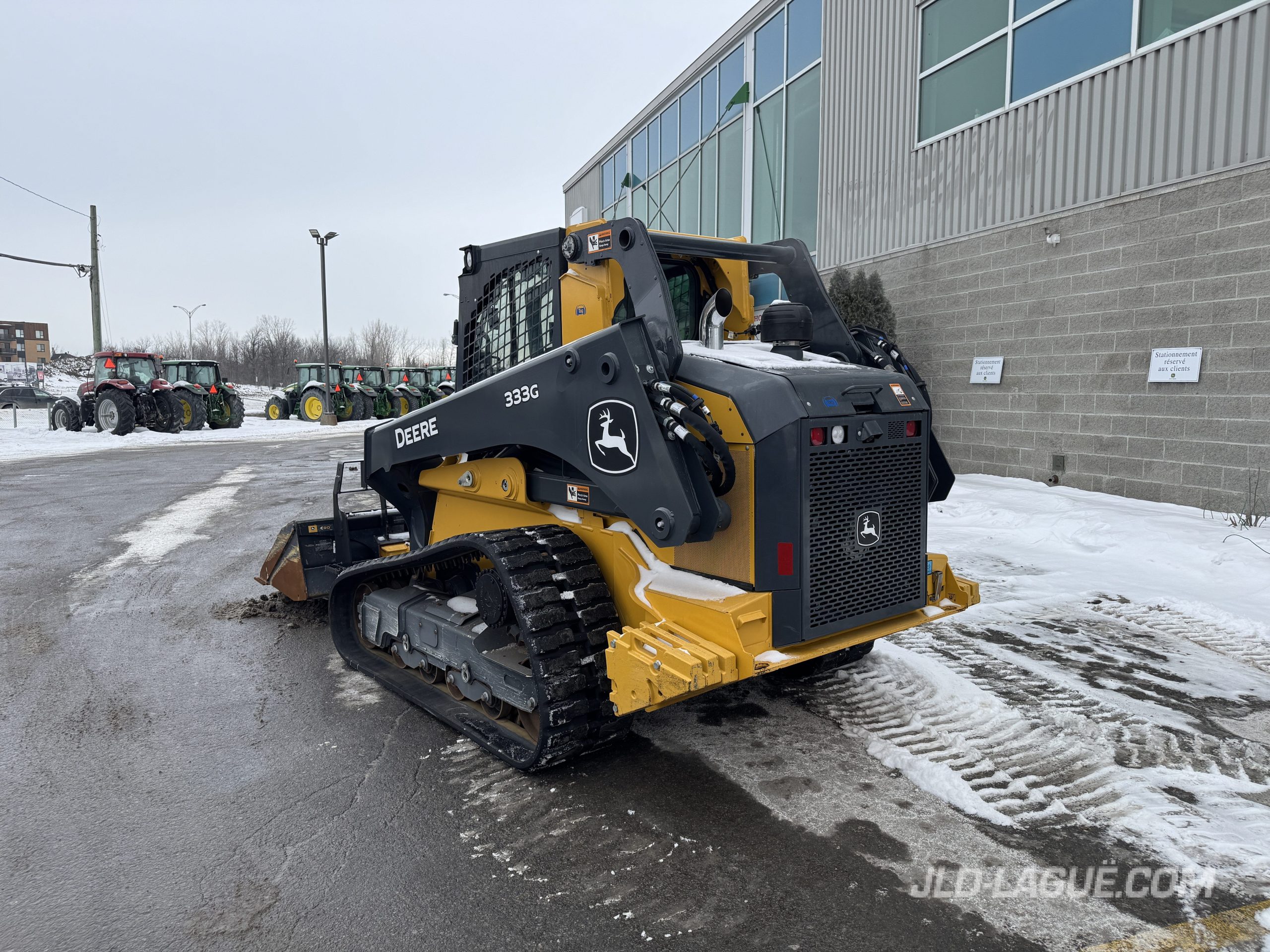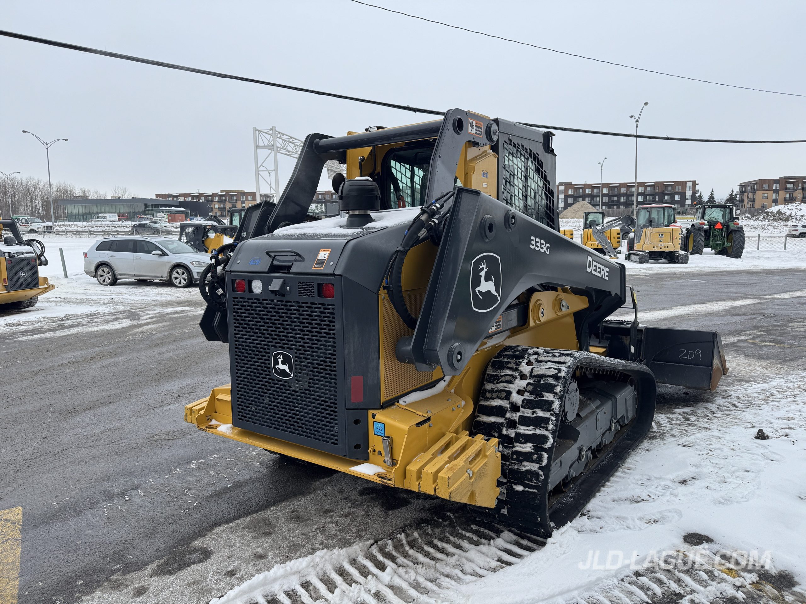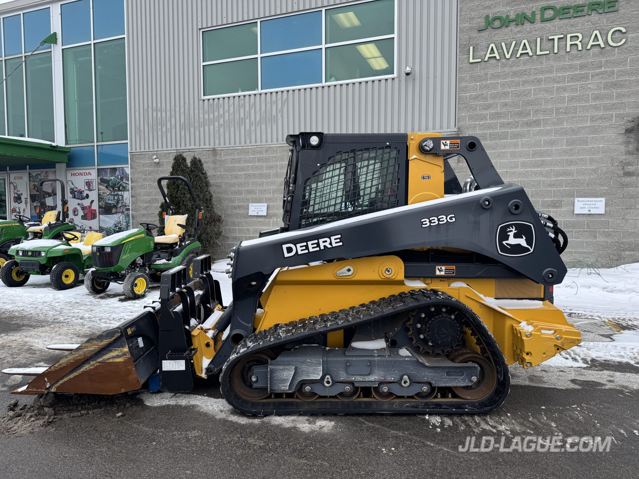 JD 333G, CAB W/ A/C, RUBBER TRACK 50% GOOD, JOYSTICK, ELECTRIC BUCKET QUICK TACH, HI-FLOW HYDR. PUMP, RIDE CONTROL, AUX. HYDRAULIC OUTLET, ENG. HP 95, 6 REAR WEIGHTS, BACK UP CAMERA, 90” BUCKET, PALLET FORK, WARRANTY 2000HRS / MAY 26 2026 JD,