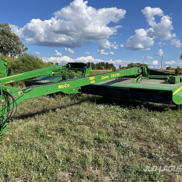 JD 956, 14.5FT, CENTER PIVOT, IMPELLER COND., DISK MOWER, 2PTS HITCH, SWIVEL HITCH, PTO 1000 1 3/8, HYDRAULIC TILT HEAD, TIRES 31X13.5 25% GOOD,