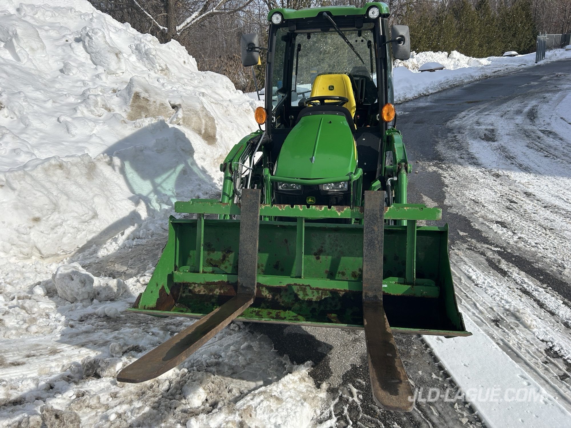 ENGINE HP 25, PTO HP 17, TRANS. HYDRO, 26X12-12 R4 90% GOOD, 18X8.50-10 R4 90% GOOD, 0 SCV, PTO 540, HEATED CAB, REAR WIPER, MIRRORS, JD 120R, NSL LOADER, 2FTS MEC. JOYSTICK, BUCKET, 48” PALLET FORK, WARRANTY 2000HRS / OCT. 26 2028 JD,