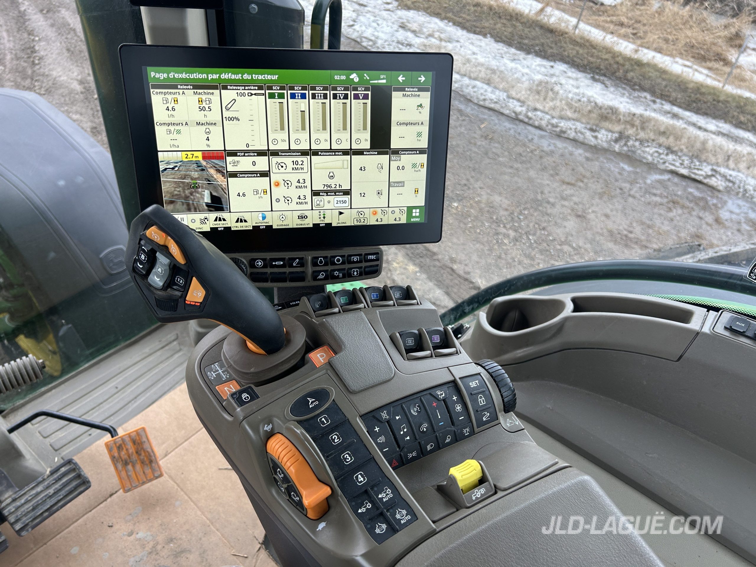 ENG. HP 370, PTO HP 350, TRANS. IVT 50KM LHR, COMMAND-PRO, 650/85R38 R1W 90% GOOD, 650/85R38R1W 90% GOOD, AXLE DUAL, 480/70R34 R1W 90% GOOD, 5 SCV, PTO 1000 1 3/4, PREMIUM CAB, PREMIUM CONFORT , SUSPENDED CAB, JD 5G PROCESSOR, 12.8” COLOR DISPLAY, J DLINK 4G CAPABLE, MULTI-CONTROL SHIFT LEVER ”COMMAN-PRO”, FRONT FENDERS, REAR FENDERS EXT., REAR WIPER, BEACON LIGHTS, HELPER SEAT, MIRRORS, EXTREMITY LIGHTS, LED LIGHTS PKG, PREMIUM VISIBILITY PKG, FRONT AXLE SUSPENDED ILS W/ FRONT BRAKE, FRONT BASE WEIGHT W/ 12 WEIGHTS, REAR WHEEL WEIGHT 2X 205KG, HYDRAULIC TRAILER BRAKE, GREENSTAR READY, AUTOTRAC READY, SECTION CONTROL , DOCUMENTATION, ISOBUS TERMINAL, JD 7000 SF1 INTEGRATED AMS RECEIVER, WARRANTY 2000HRS / FEB. 28 2026 JD ,